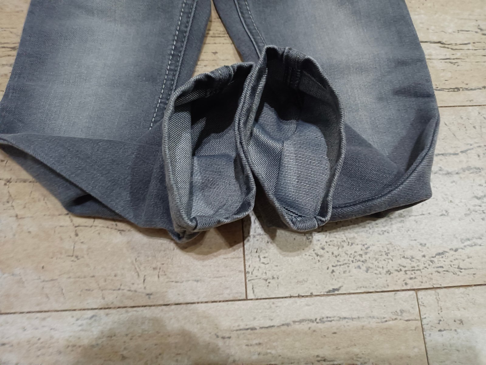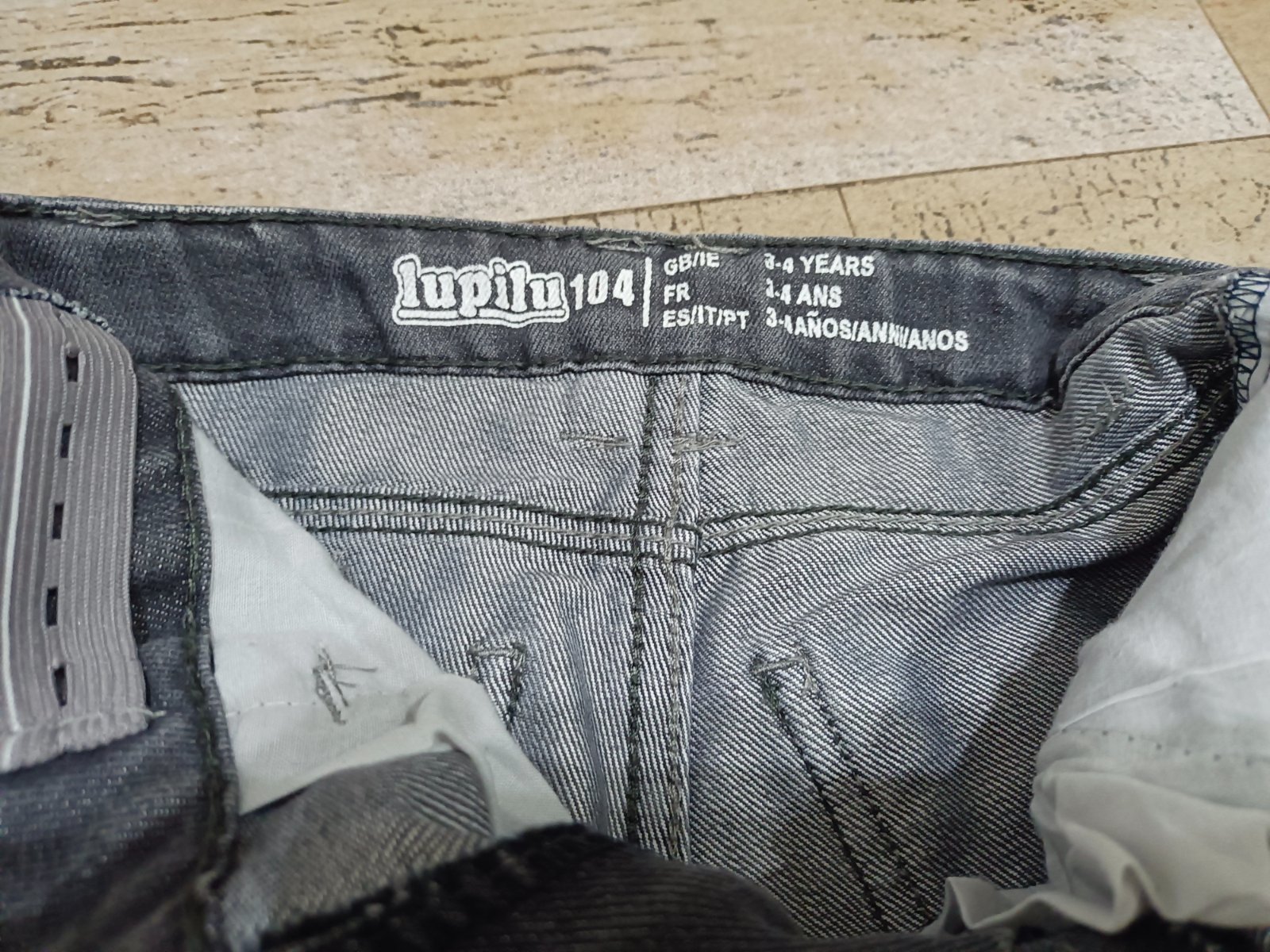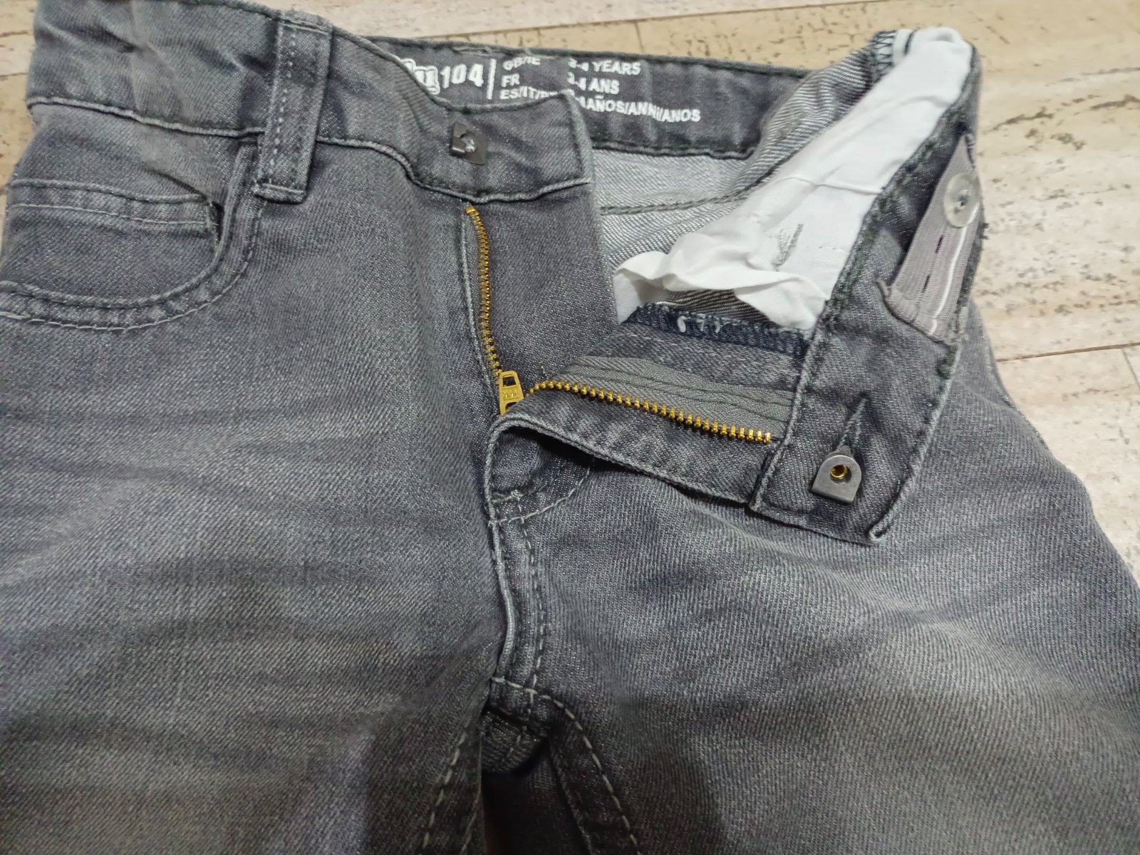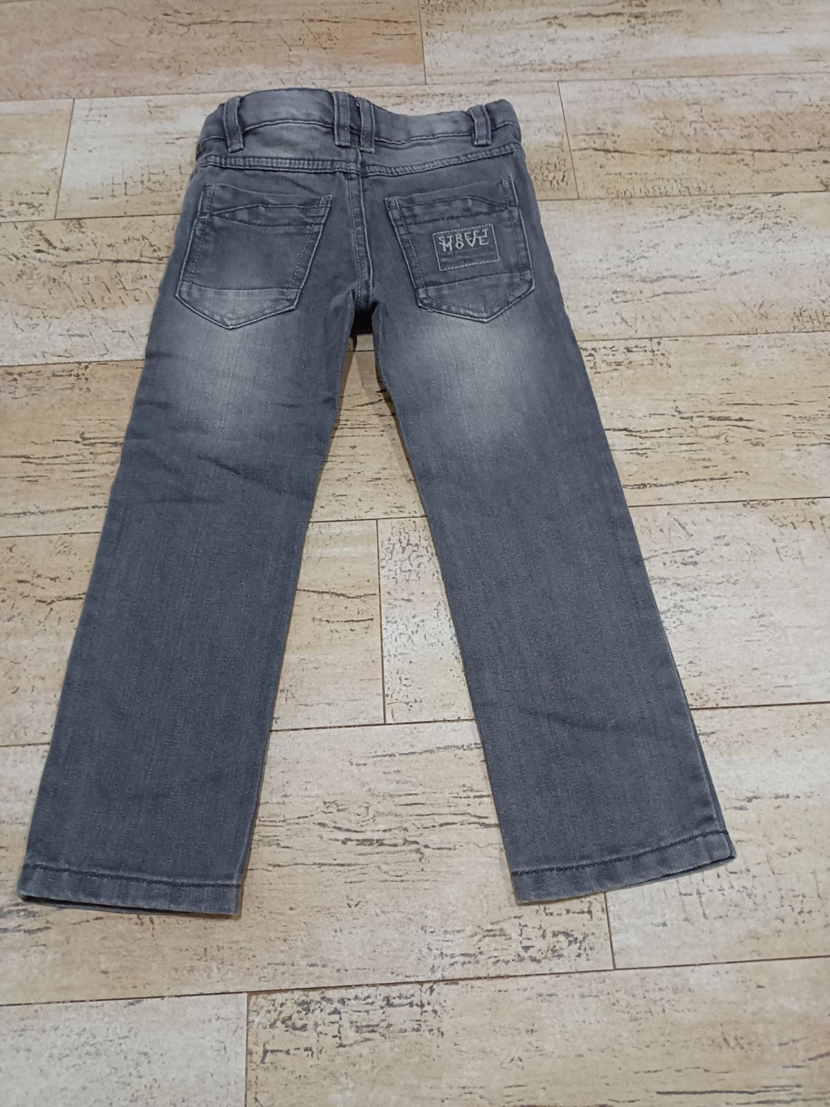 šedé rifle, uvedená vel. 104, ale odpovídá 110/116, oblečeny 1x na focení, krásný stav.