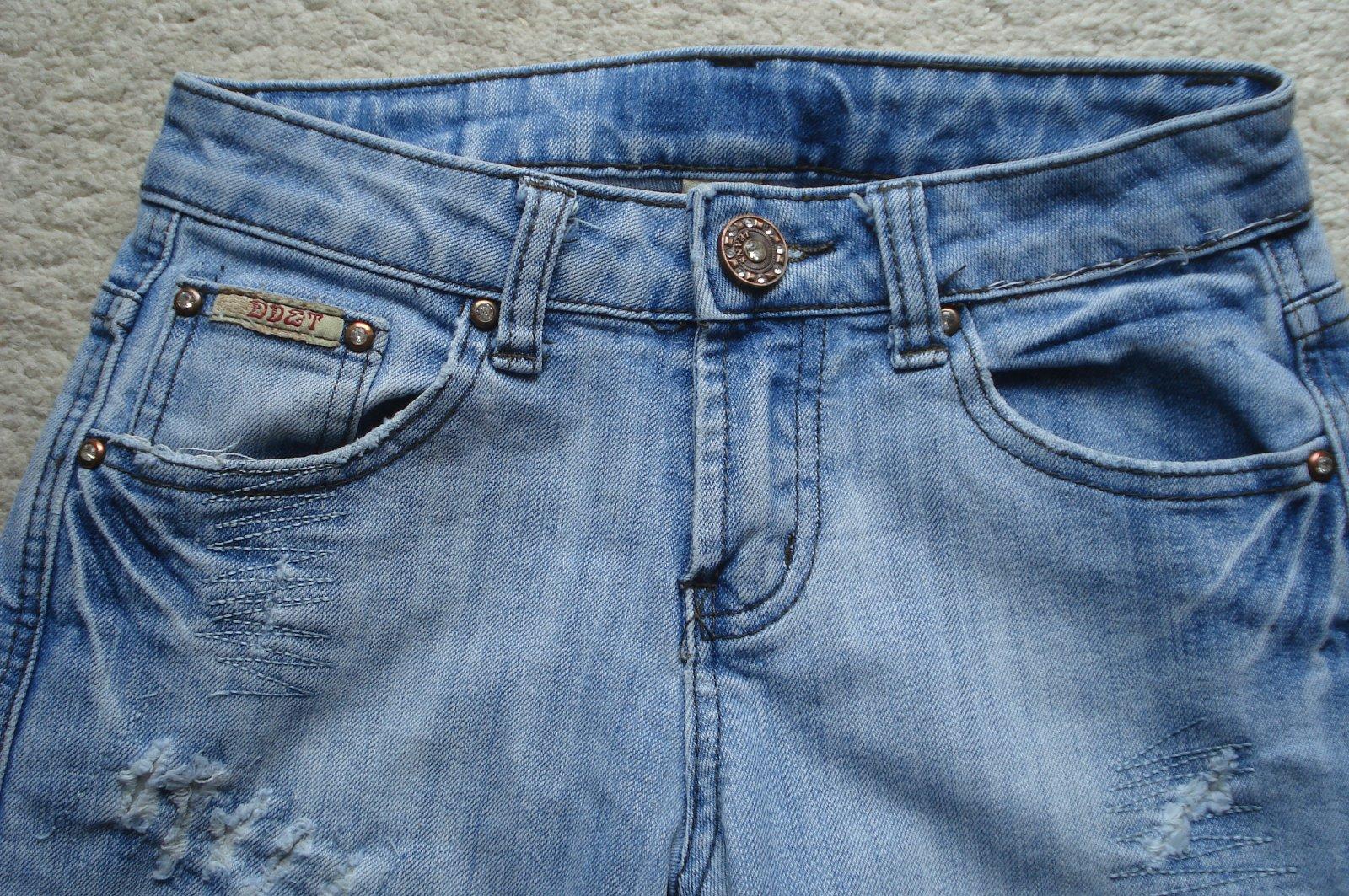 Rifle po mé dcerce na donošení.Dcera je nosila na keramiku fleky od hlíny se mi nepodařilo vyprat.Cena snížená.Celková délka je 85 cm,pas 2 krát 32 cm.Cena snížená