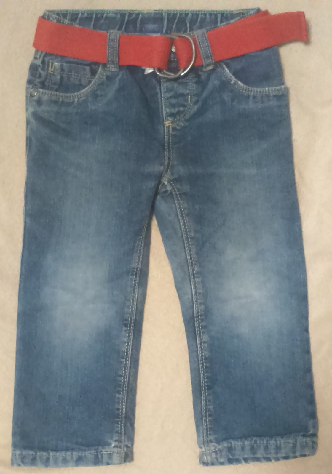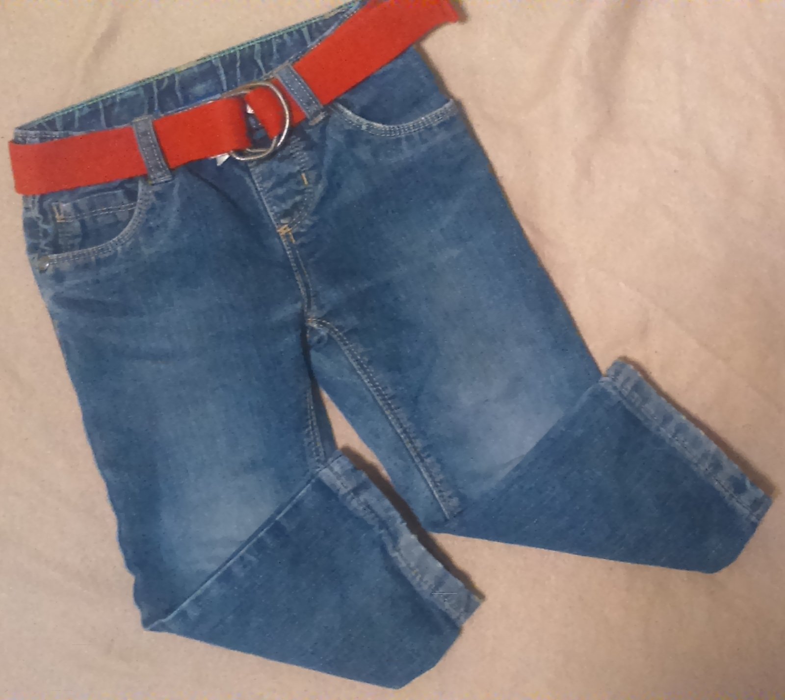 Džíny s páskem, nošeny, viz. foto + přidám tepláčky na donošení třeba na zahradu