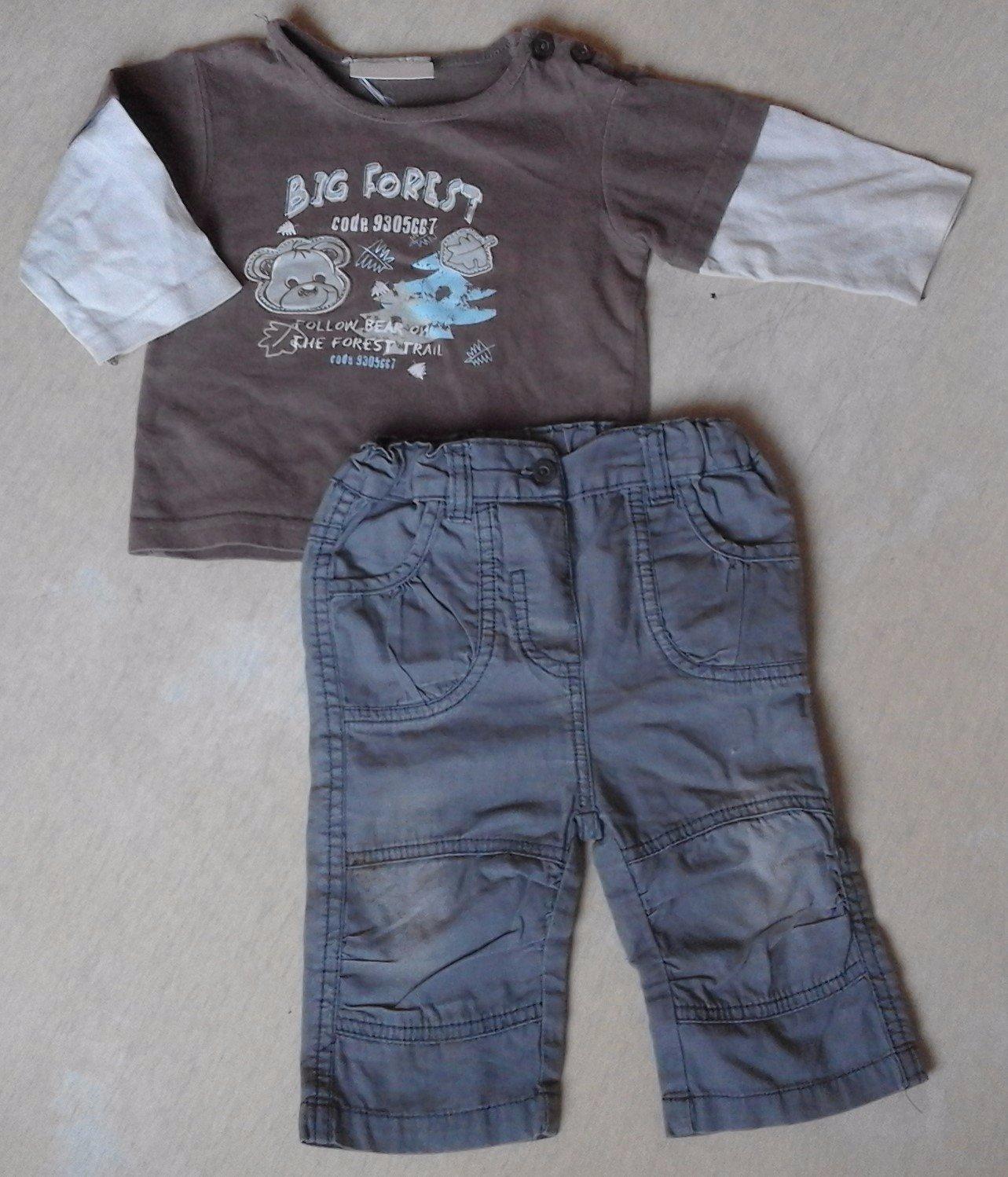 Šedé plátěné kalhoty a triko hnědé - vel.68
