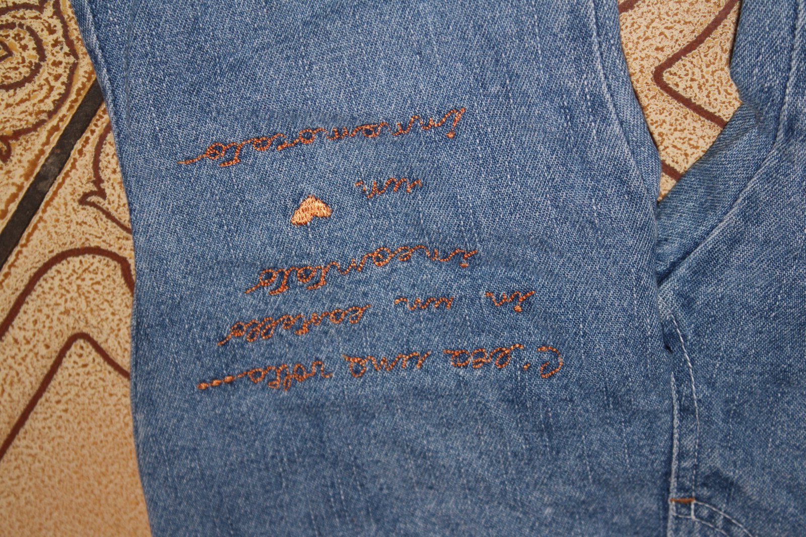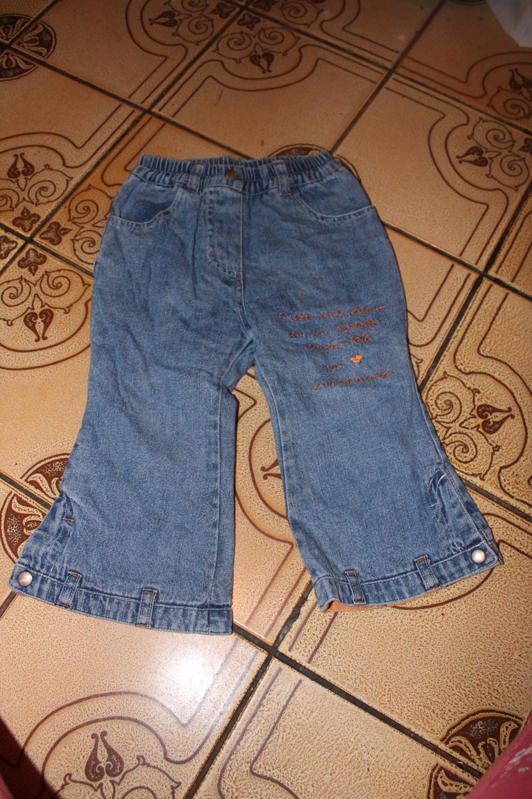 Dívčí rifle - džíny s kapsičkami, nápisem vl.80-86