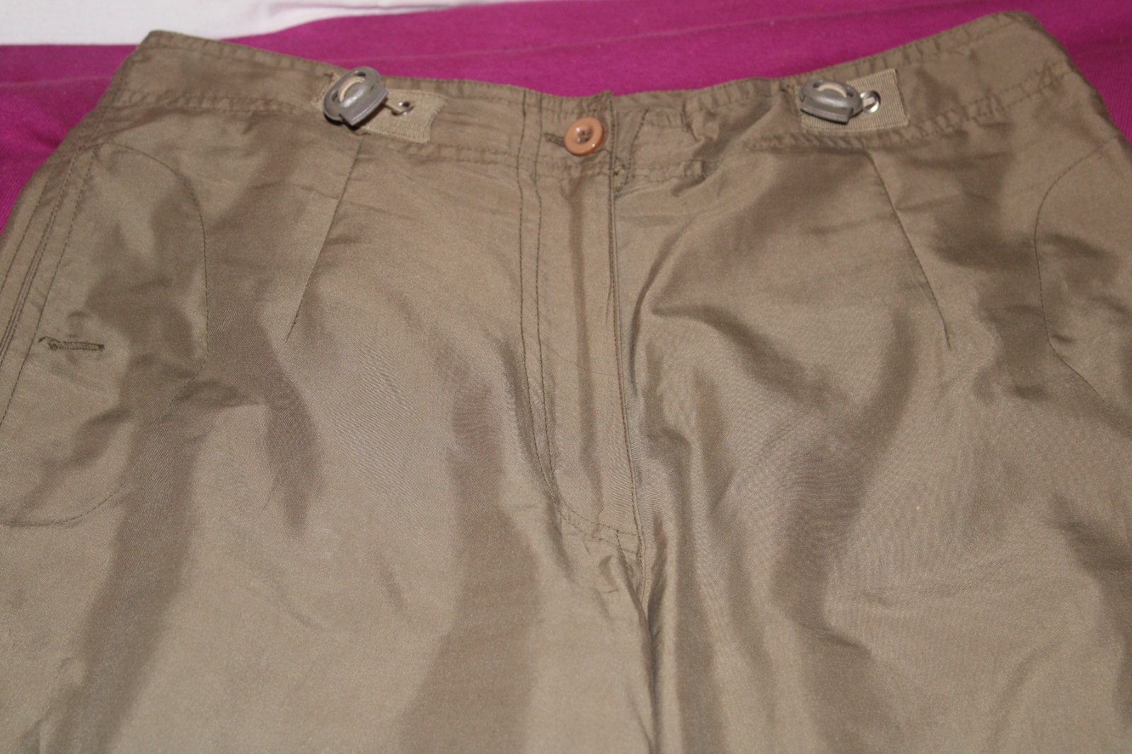 Prodám kalhoty v perfektním stavu, velikost: 36, obvod v pase je: 72 - 73 cm, složení: 100 % polyester. Cena kalhot je: 150 Kč + poštovné. Krabice č. 32.