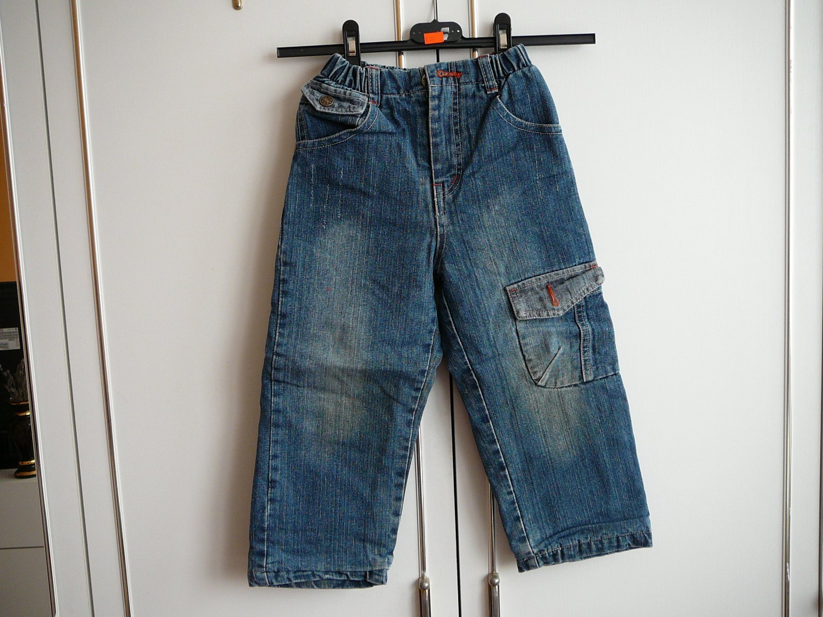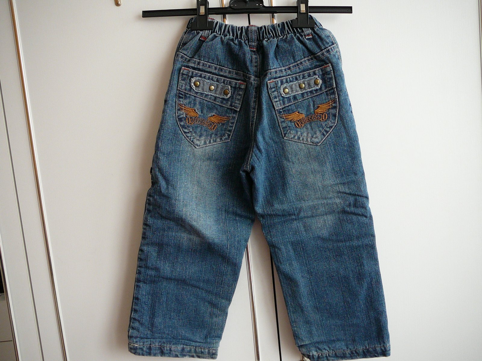 Nošené, ale zachovalé rifle. Pro pořádek přikládám fotku spodní části nohavic, maličko drobné odřeninky. Vel. 110