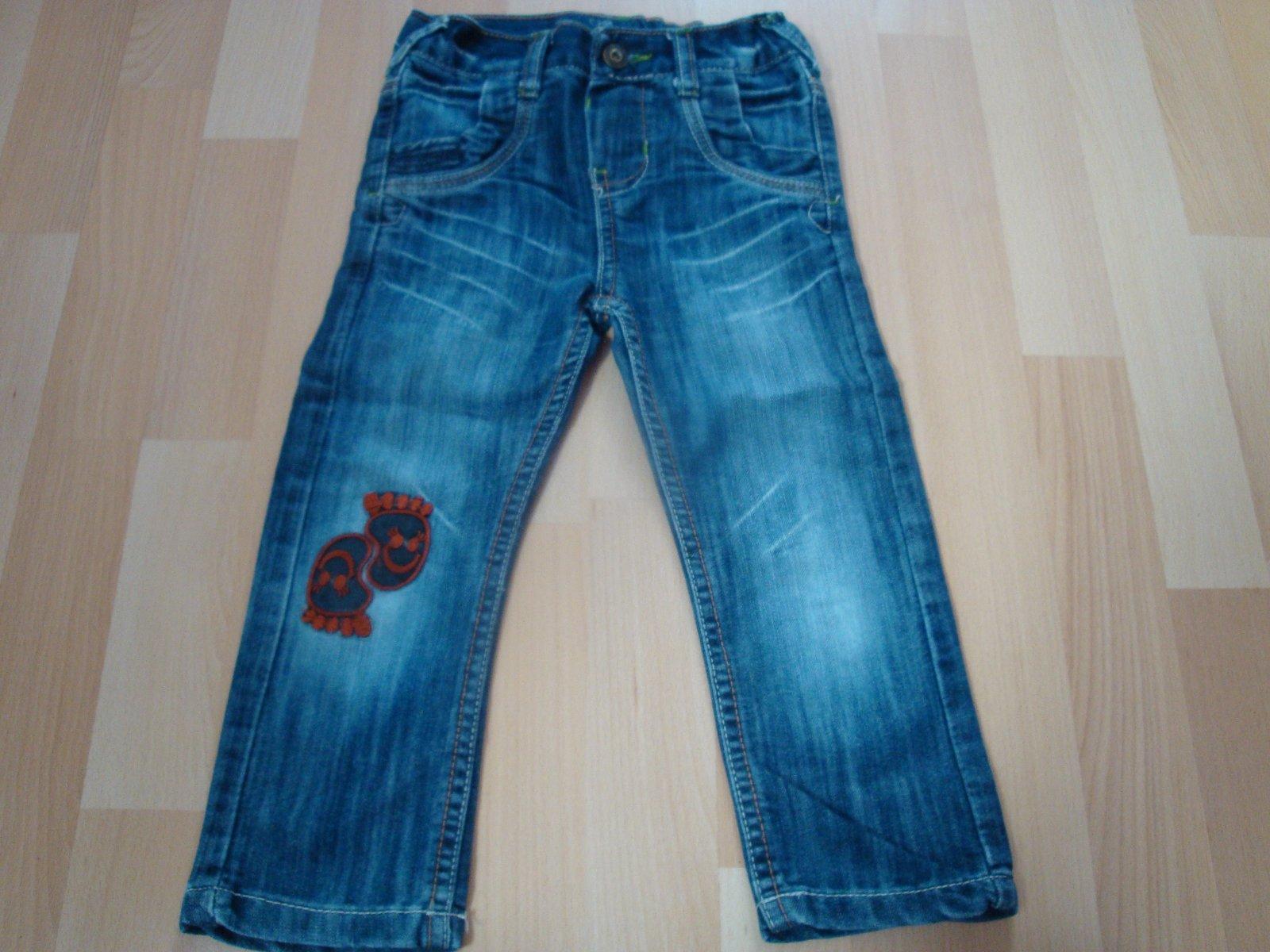Pěkné moderní džíny v tmavě modré barvě s "ošoupanými" nohavicemi. Vhodné pro děti ve věku 2-3 roky, zn. Cherokee. V pase je částečně regulace, zapínání na knoflík, spousta kapes. Na pravé nohavici je nášivka. Velmi dobrý stav. Výše poštovného činí 59,-Kč za doporučený balík.
