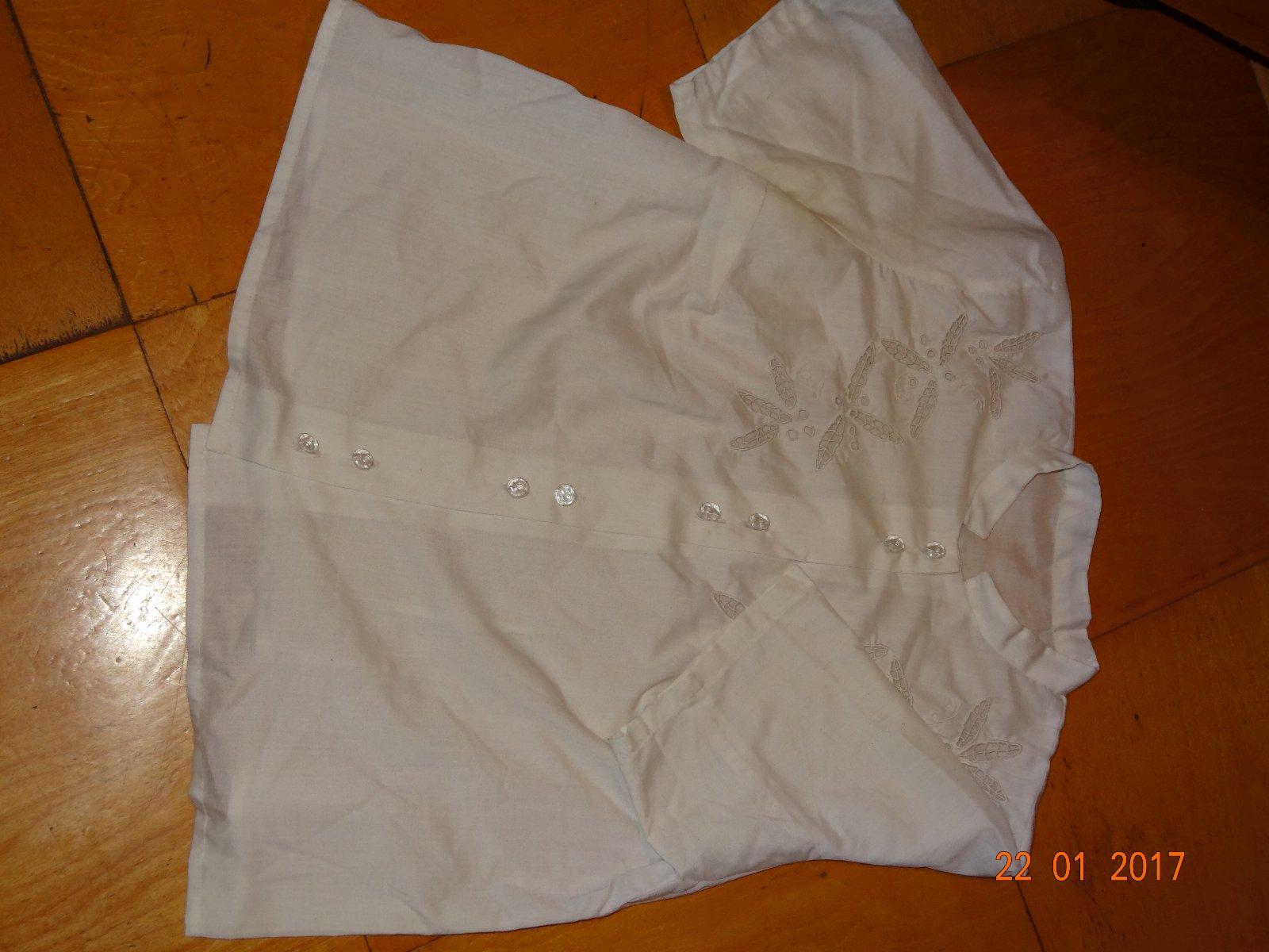 Prodám bílou (něco na způsob plátna materiál), ve velmi dobrém stavu, malinko povolená nitka, ale nejde skoro vůbec vidět, kdo bude chtít, zkusím lépe vyfotit. Velikost 146. Cena 15 kč + poštovné.