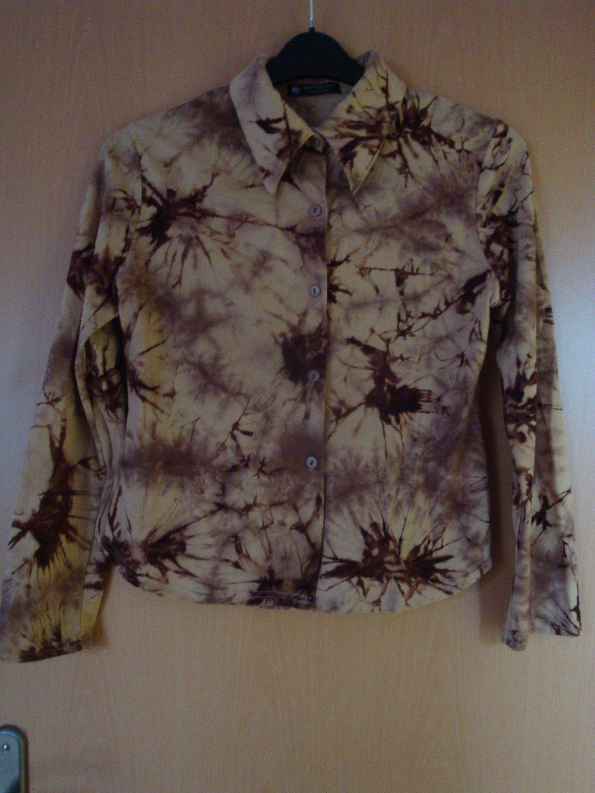 Krásná, moderní, batikovaná halenka v barvě hnědé ve velikosti L. Zapínání na knoflíky. Velmi dobrý stav, skoro jako nová. Výše poštovného činí 55,-Kč za doporučený balík. V případě dotazů mě prosím kontaktujte.