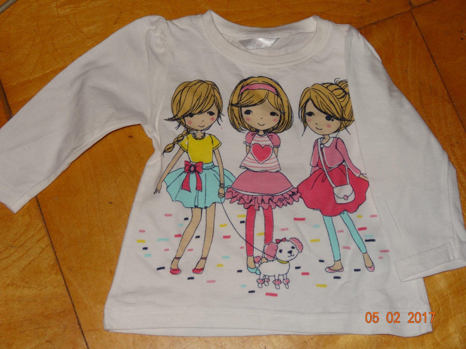 Prodám krásnou halenku s děvčaty a pejskem, je v super stavu, velikost 74, složení 100 % bavlna, značku už nevím. Cena 45 kč + poštovné.