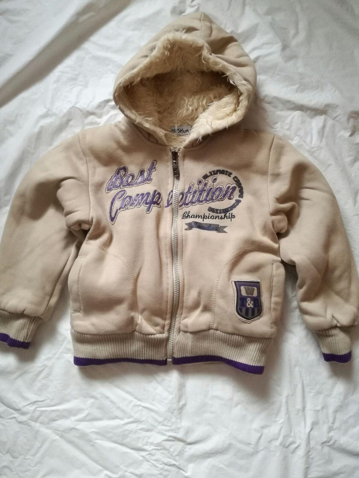 Mikina je teplá, má kožich uvnitř, v rukávech je podšívka takže i rukávy jsou vyteplené, lze nosit i jako bundu. Vel. uvedena 6 let. D.42 cm, rukáv od krku 47 cm, šířka 2x39 cm.
