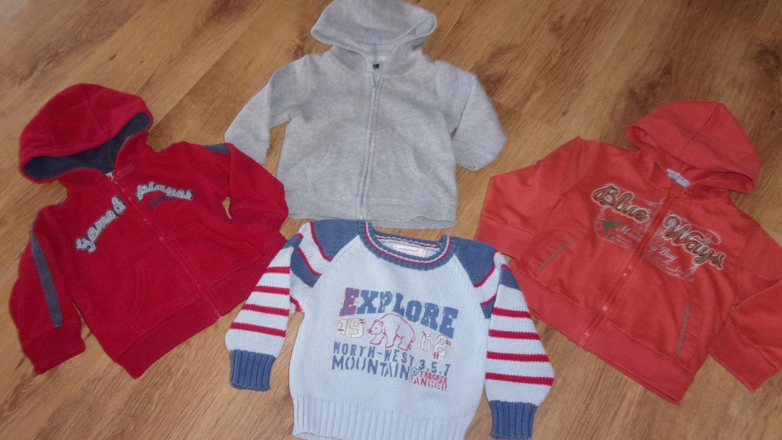 Mikiny vel. 74/80, vše nošené a prané, šedá v top stavu, červená také moc pěkné, svetr bez vady, jen na oranžové je dírka. Cena za vše 85,-Kč