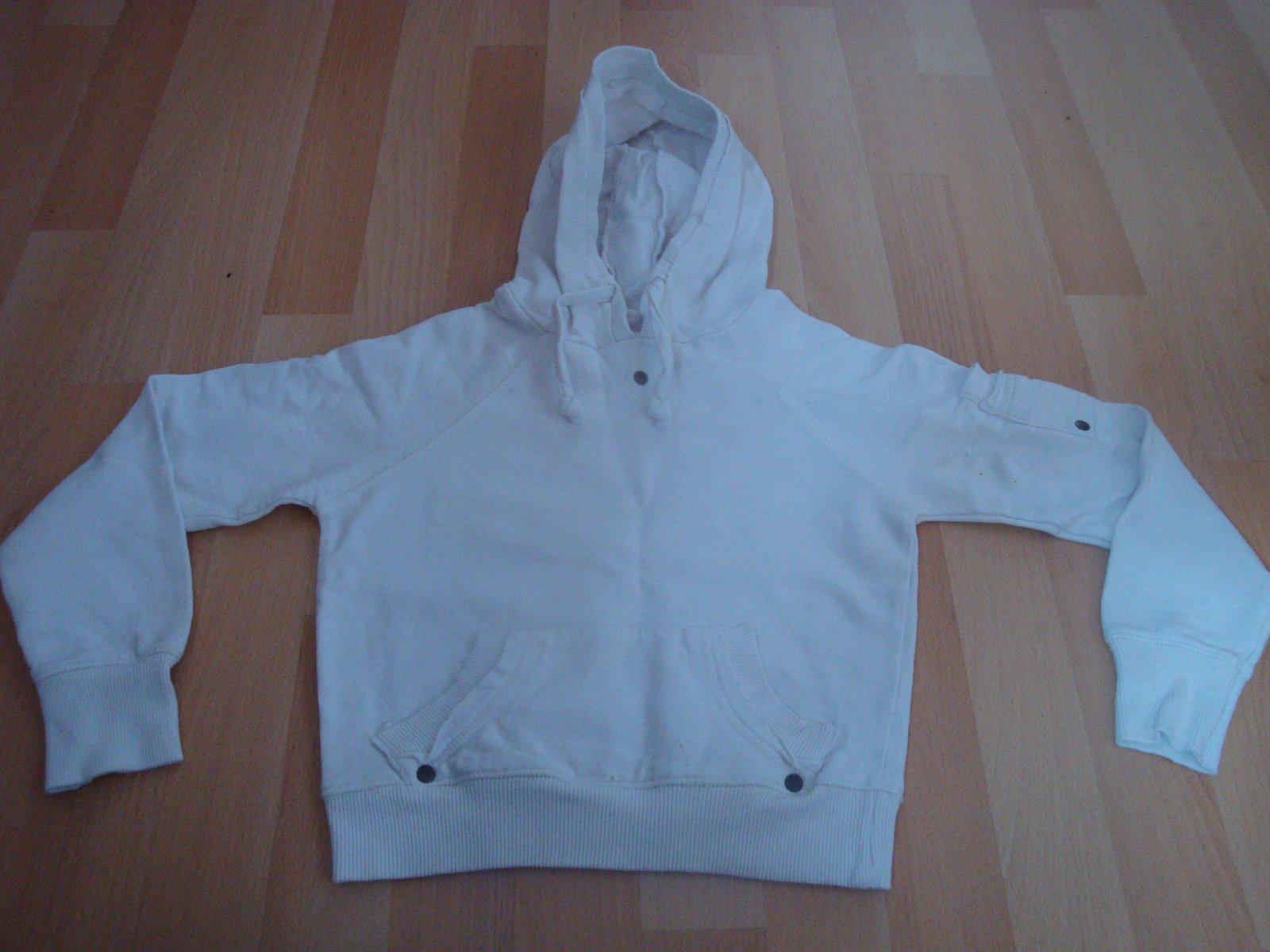 Velmi pěkná bílá mikina s kapucí pro holky ve věku 5-6-ti let (uvedená velikost je 7-8 let, ale to určitě neodpovídá). Mikina má kapucku, vpředu větší kapsu. Top stav. V případě dotazů mě prosím kontaktujte.