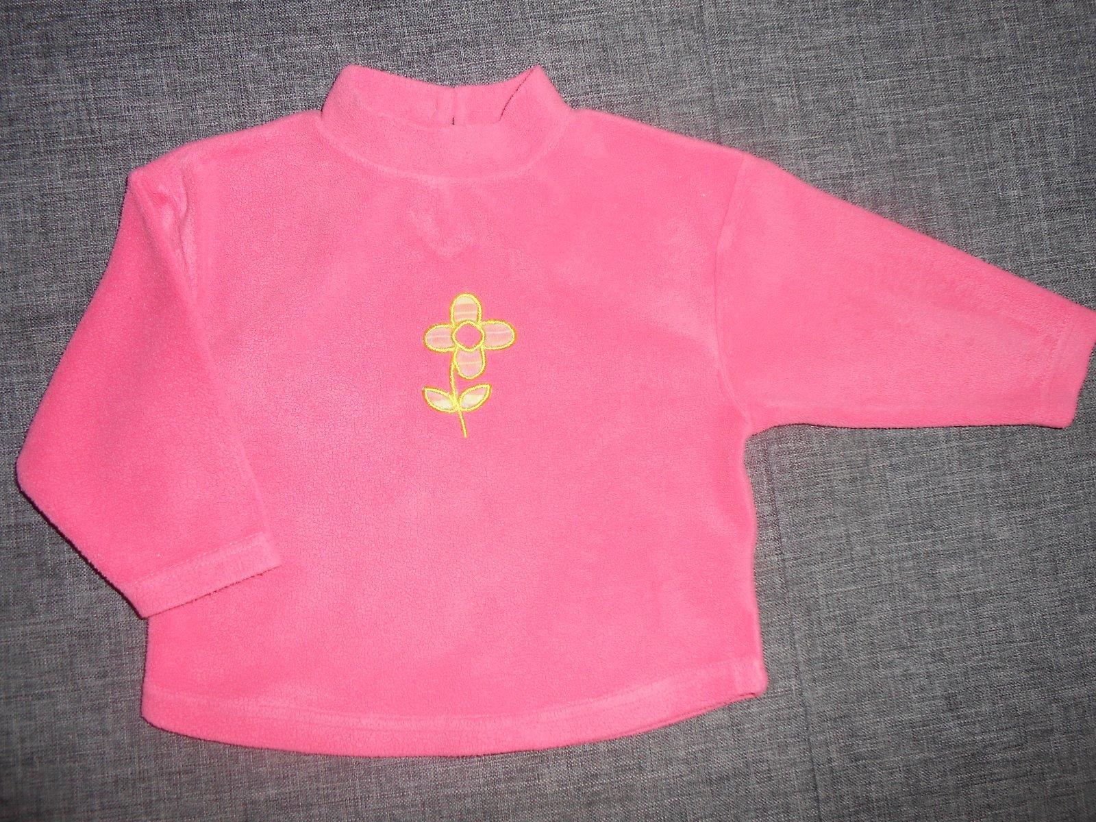 Mikina flísová, vel. 6-12 měsíců, zn. Babaluno, tmavě růžová barva, s výšivkou kytičkou, dobrý stav