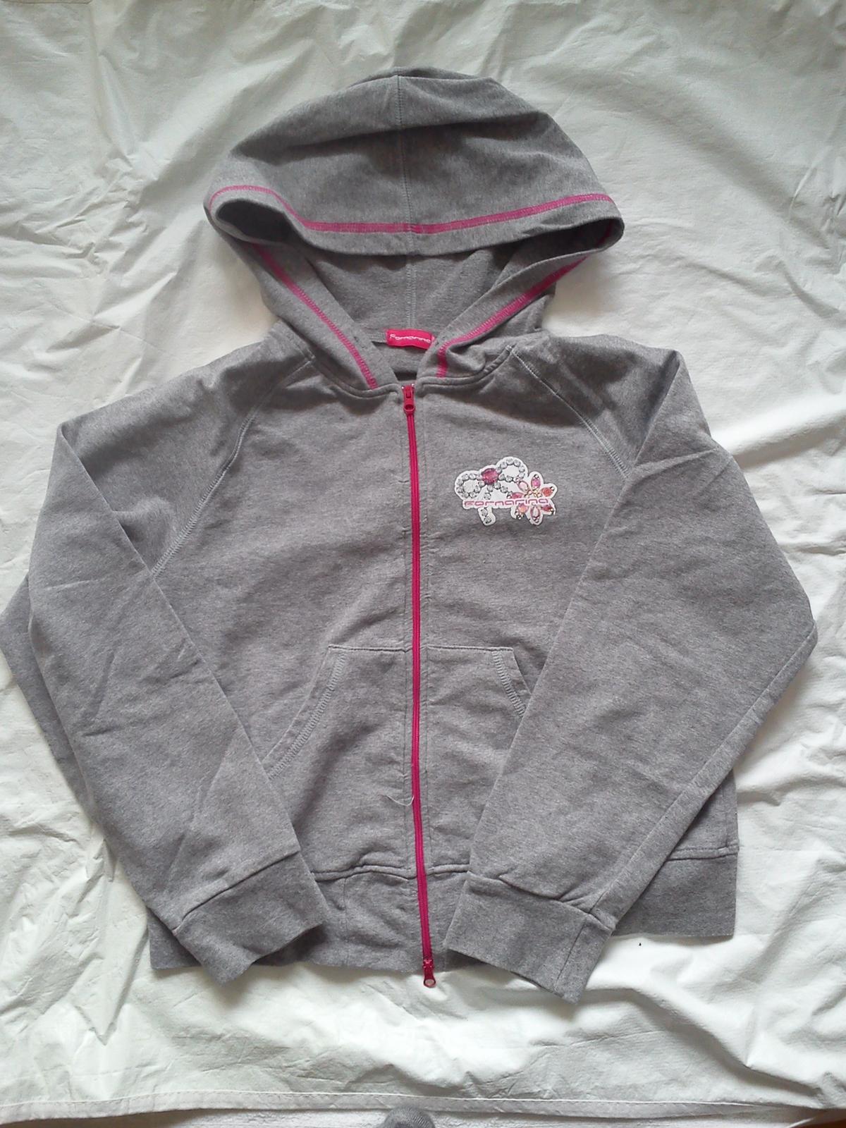 Značková mikina Fornarina, je šedá, vzadu zlatý nápis. Pěkná, bez vad, nošená, jen u kapuce byla šňůrka, která tam již není. Vel. uvedena 12, dávám do 140 Délka 46 cm, šířka 2 x 44 cm, rukáv od krku 58 cm