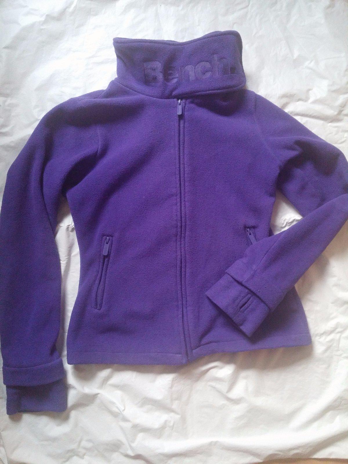 Fialová projmutá dámská mikina Bench, je fleesová, silnější i jako bundička, otvory pro palec, nošená.