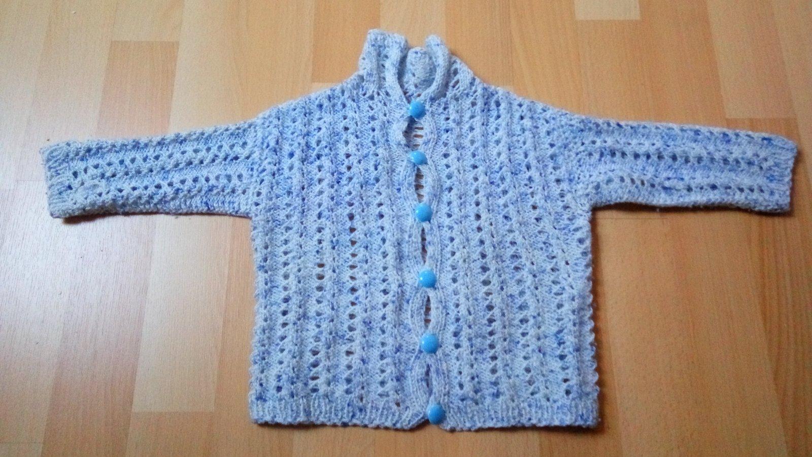 Pěkný ručně pletený svetr v modré barvě. Zapínání na knoflíky, velikostně odpovídá č. 74. Top stav. Výše poštovného činí 35,-Kč obyčejně nebo 50,-Kč doporučeně. Pro více informací mě prosím kontaktujte.