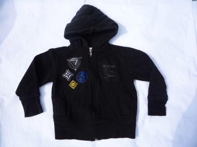 Černá mikina s kapucou a s nášivkama zn. C a A, nošená, bez vad. Délka 34 cm, šířka 2 x 30 cm, rukáv od krku 37 cm