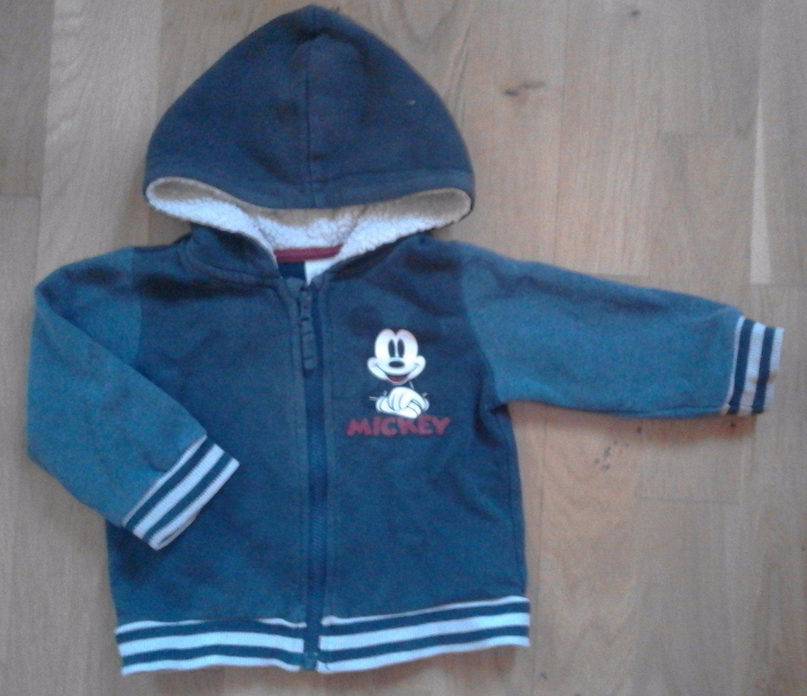 Krásná modrá miki na zips s kapuckou Disney. Velikost 68 (3-6m) i déle.