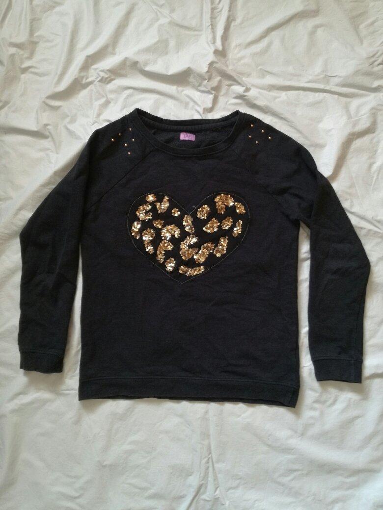 Modročerná se srdcem zn. FaF- d. 56, š. 2x43, rukáv od krku 58 cm, v. 152 - 89,-