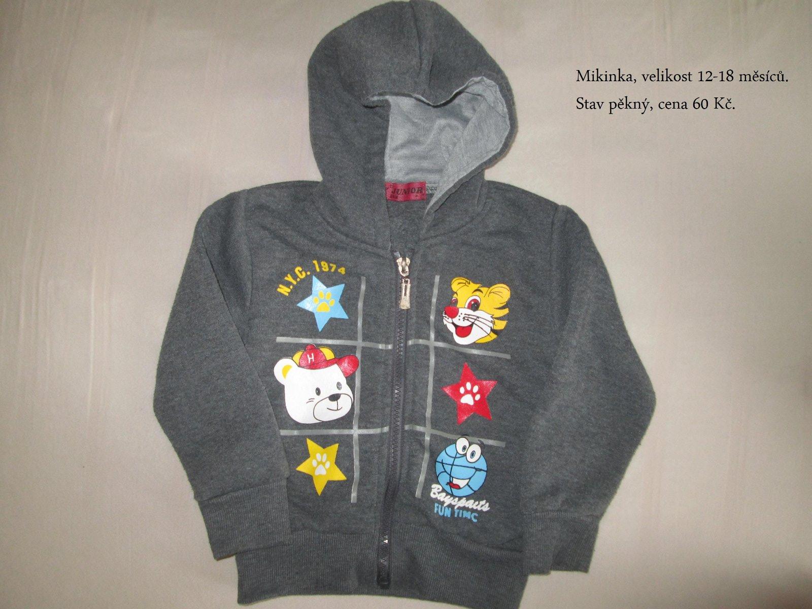 Prodám mikinu 12-18 měs., v pěkném stavu, cena 60 Kč.