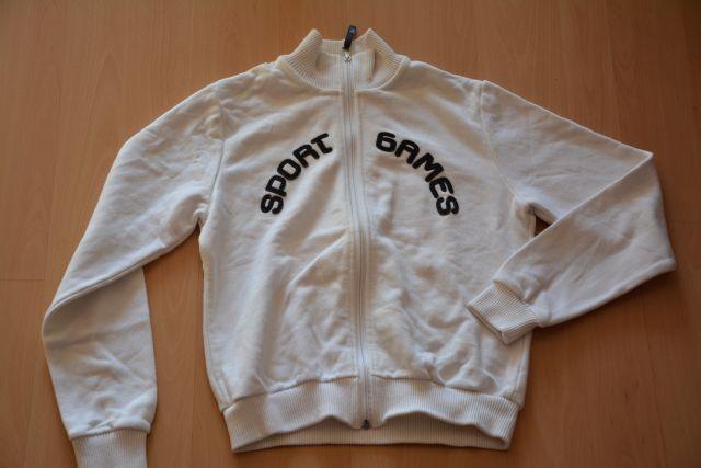 Nošená bílá značková funkční mikina, už má trošku prací chloupek. Mikina je na zip, uvnitř flees, je funkční. Délka 58 cm, šířka 2 x 51 cm, rukáv od krku 74 cm.