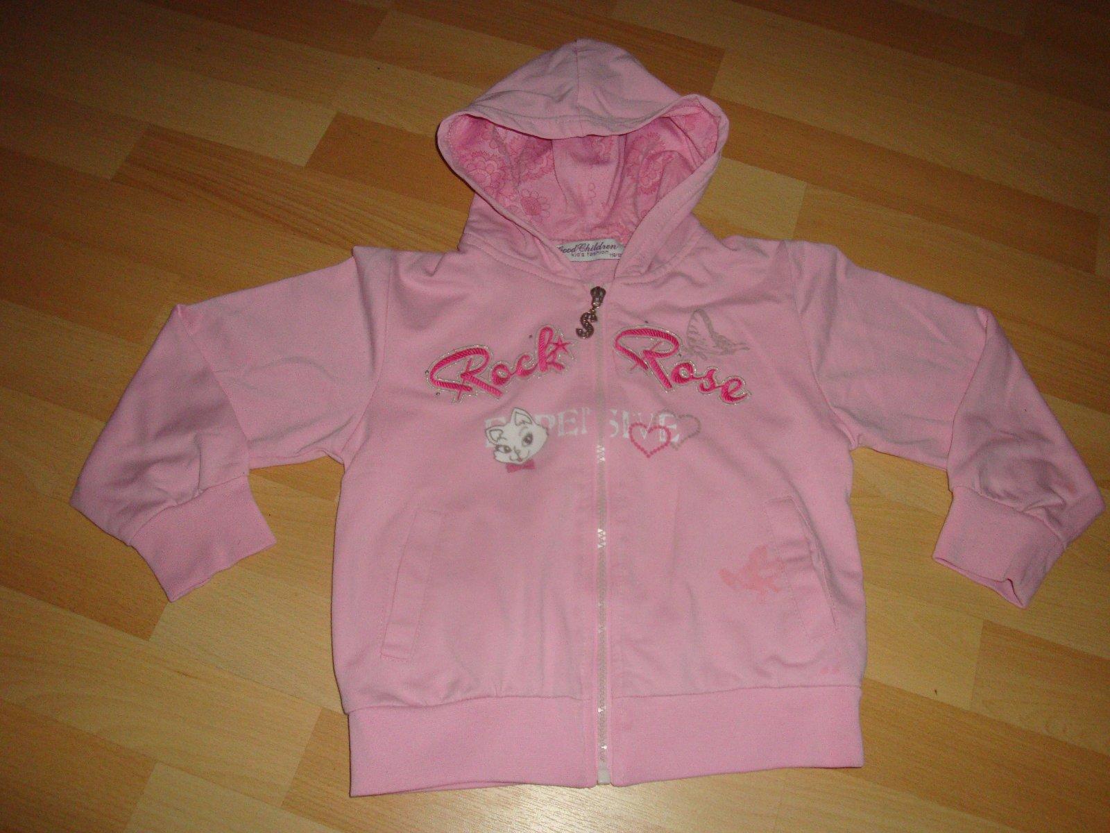 Krásná mikina v růžové barvě se zapínáním na zip. Je vhodná pro děvčata ve věku 4-6 let (vel. 116/122). Vpředu dvě kapsičky, motiv kočičky a srdíček. Mikina má kapucu, zn. Good Children. Top stav. V případě jakýchkoliv dotazů mě prosím kontaktujte.