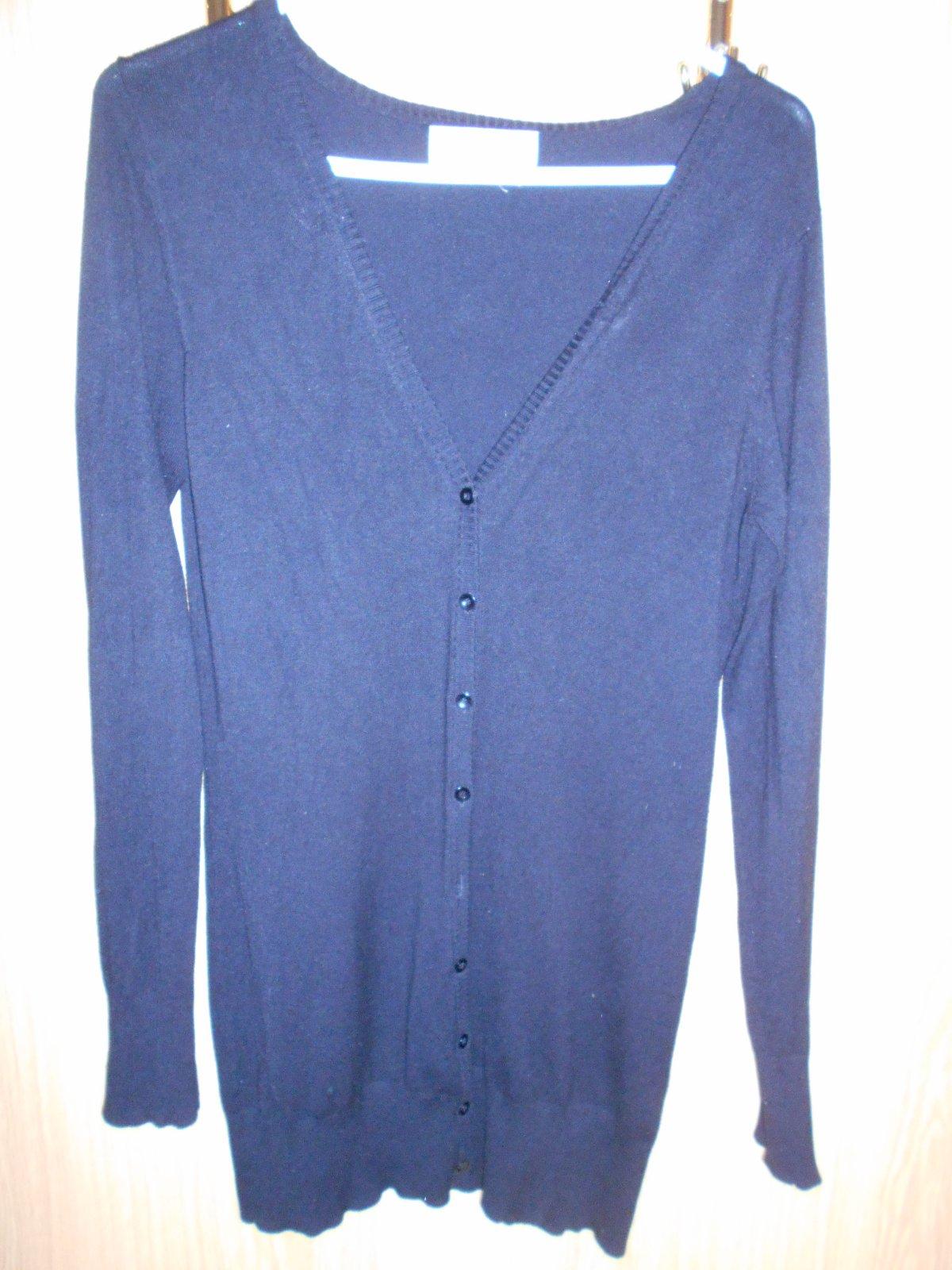 Prodám černý úpletový tenčí svetr na propínání,uvedená vel.je M/L,ale myslím,že obleče i XL,délka 85cm,šířka 2x45-55cm,délka rukávu od krku 80cm,průramek 2x22-25cm,je velmi pružný,nošený,stále moc hezký,bez vad,omluvte foto,ale foťák mi to nechtěl lépe nafotit,skutečně je čistě černý,cena 200kč.