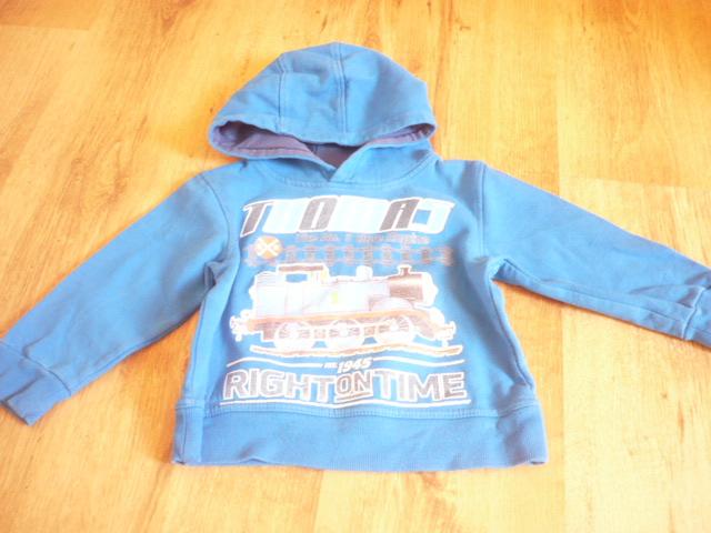 Mikina Mašinka Tomáš, vel. 98, nošená a praná, obrázek je vybledlý, ale jinak je pěkná, poslouží na doma, na lítačku, příjemný bavlněný materiál.