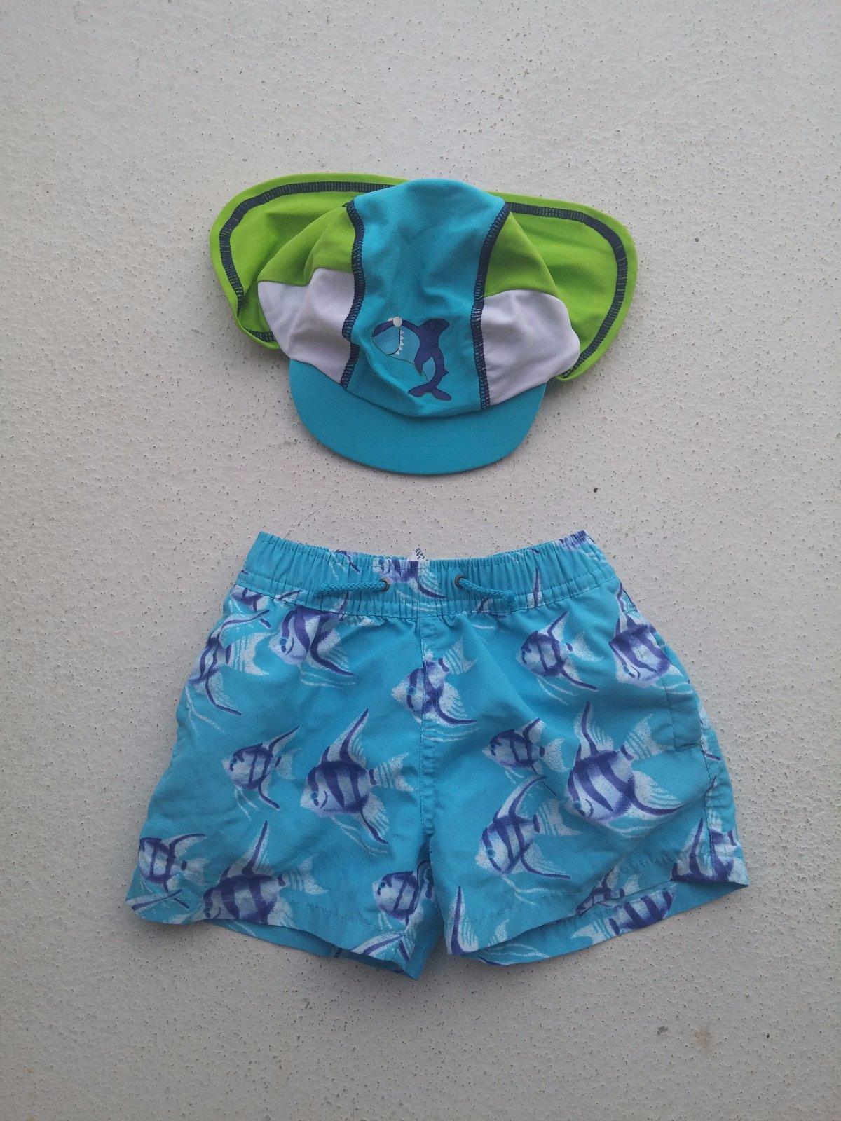 Krásné plavky, kraťasy se všitou síťkou pro chlapečky, v pase tkanička na zavazování - 50,- Kč Mám k nim i kšiltovku z plavkoviny s ochranou krku - 50,-Kč. Pas 2 x 20-28, délka 21 cm.