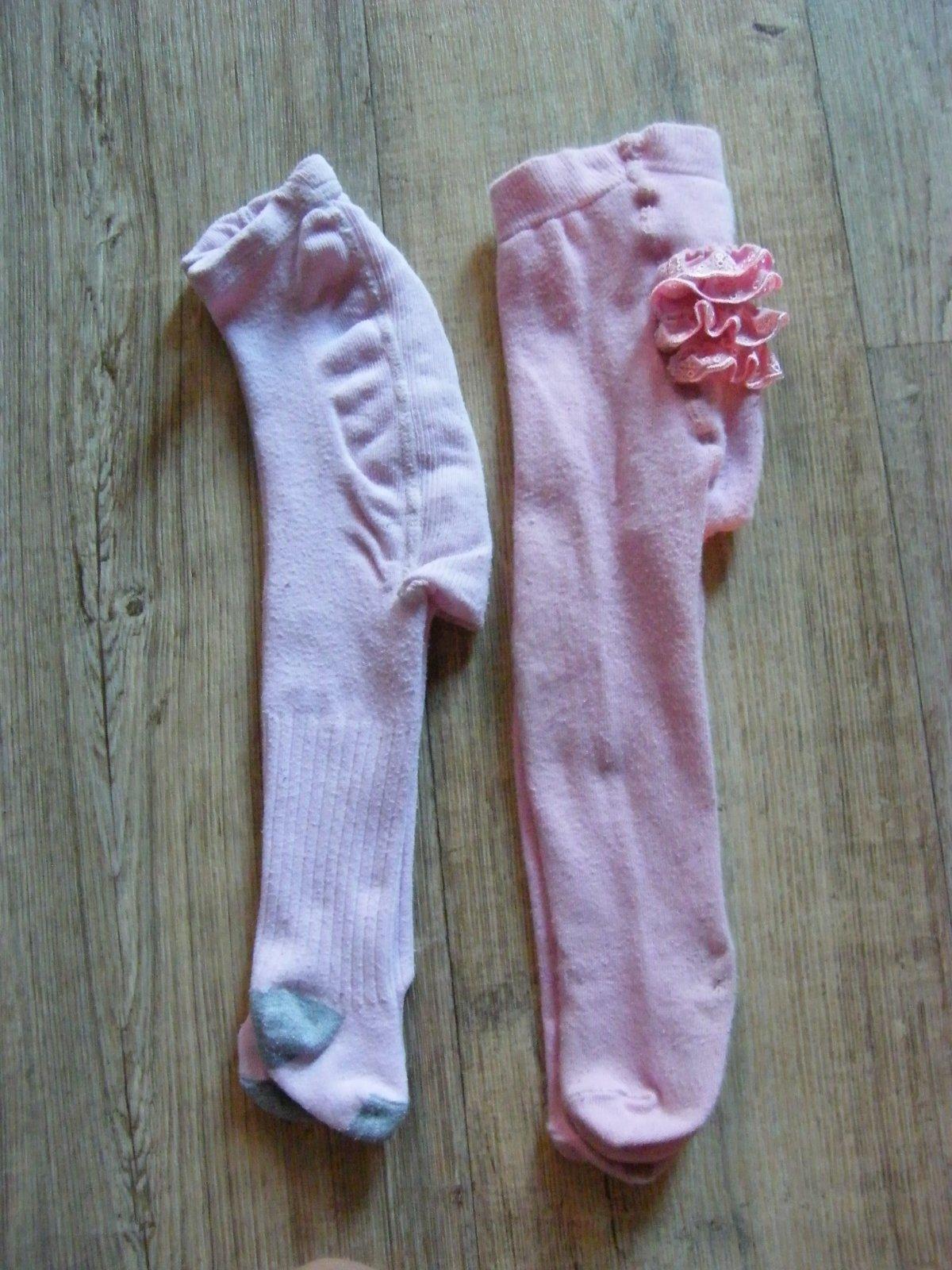 2ks kupované punčocháčky nošené žmolíky, světlé mají více vytahaný zadeček a flek od banánu na stehně