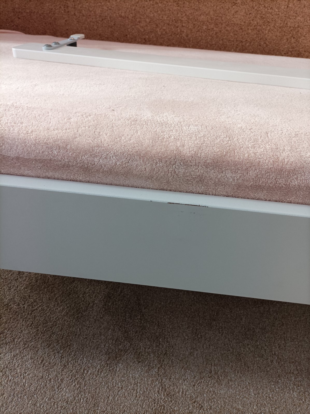Přidám chránič PU na matraci, bílé prostěradlo se zátěrem a dvě froté prostěradla (meruňkové a světle modré).