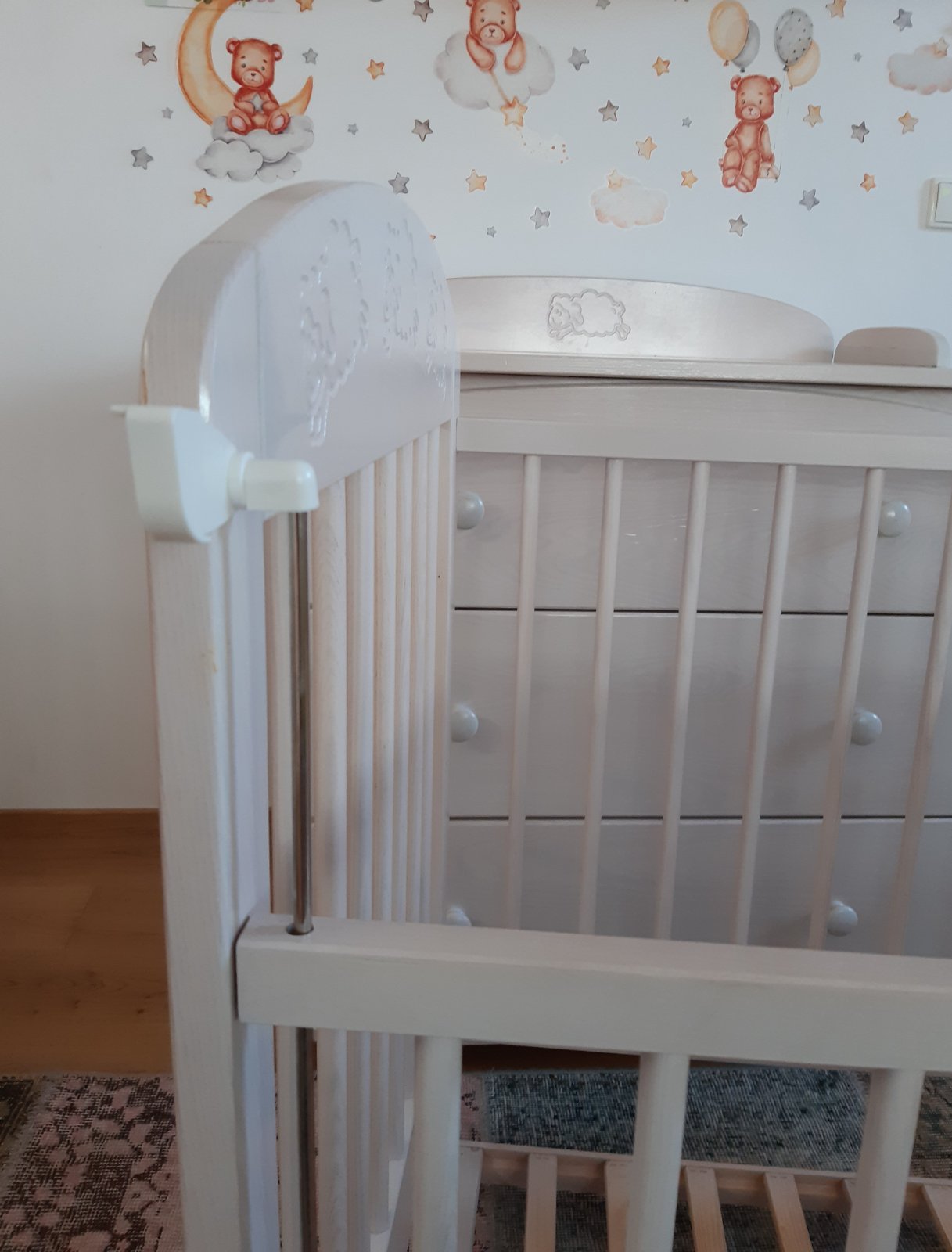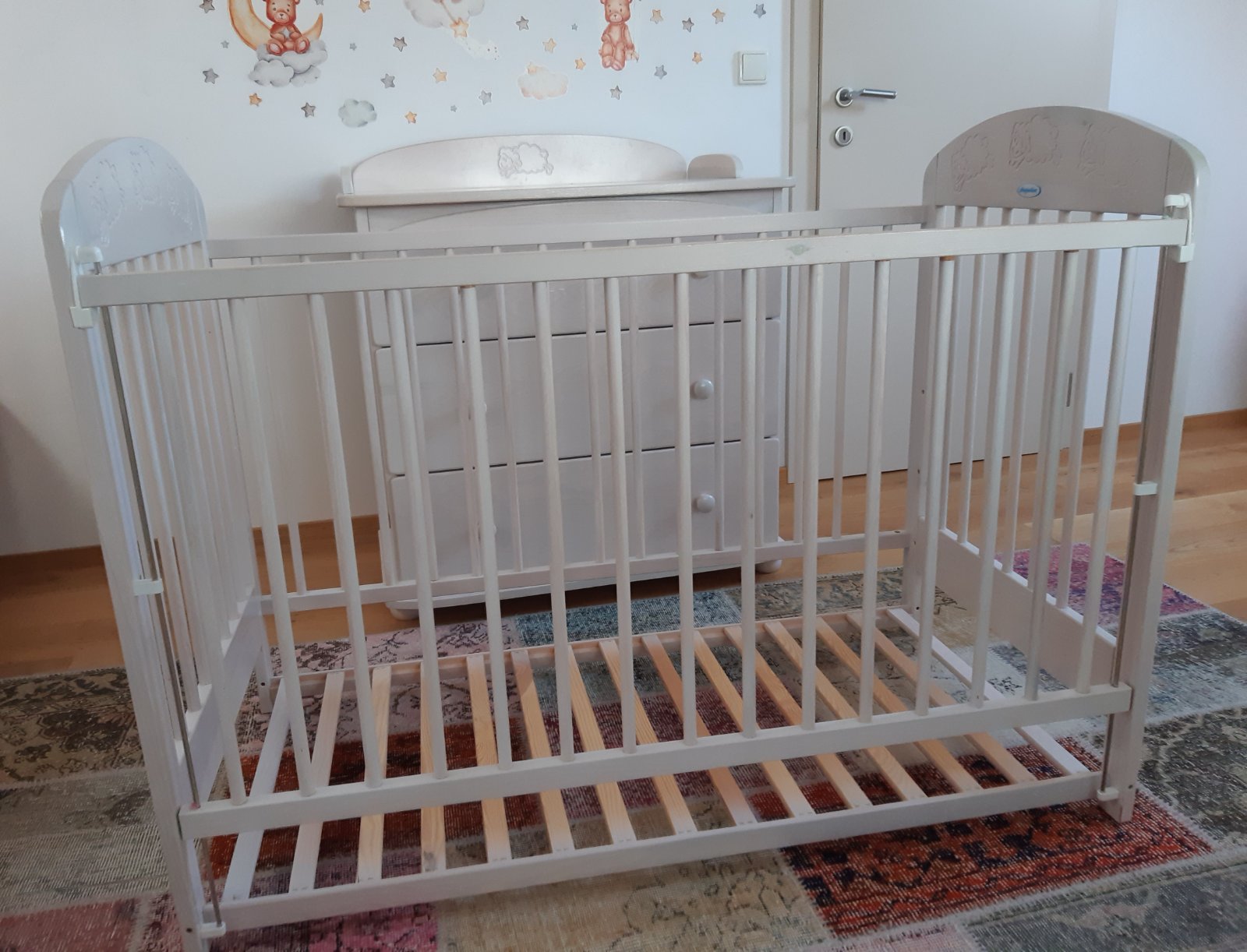 Dřevěná postýlka/s matrací/ + komoda