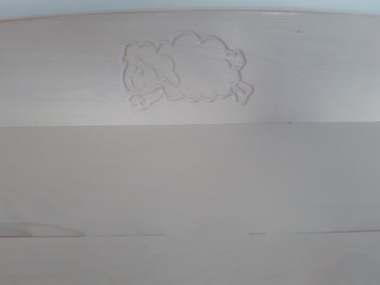 Postýlka Puppolina z borovicového dřeva, řezba tří oveček.