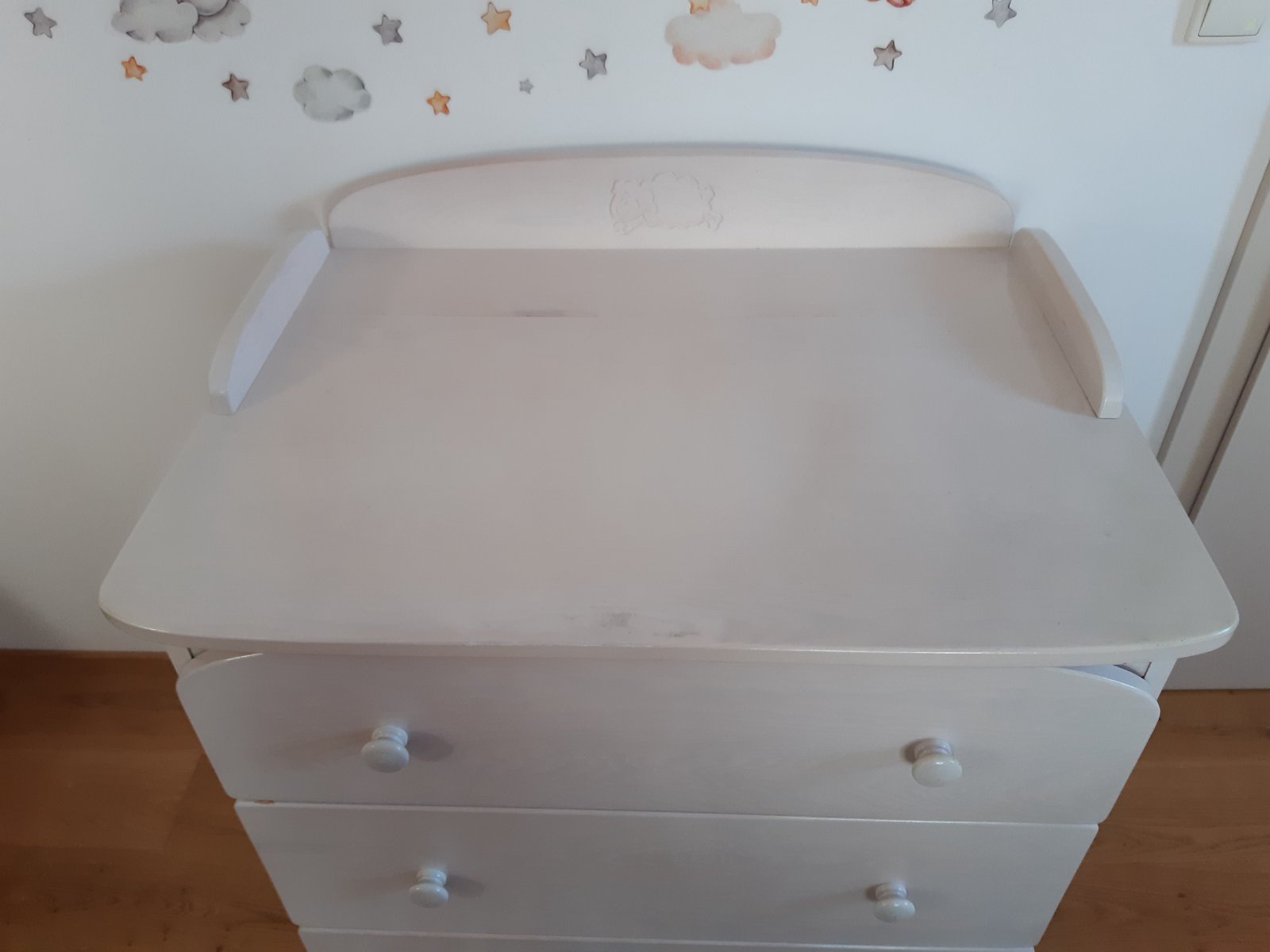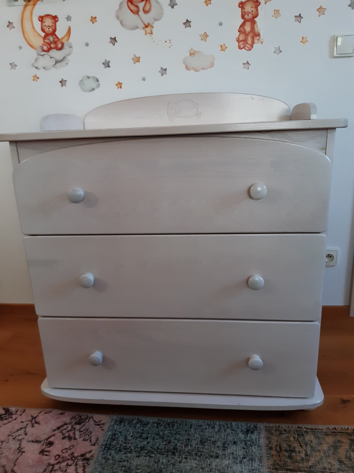 Z přebalovacího pultu lze oddělat zadní nástavec a používat jako šuplíkovou komodu.