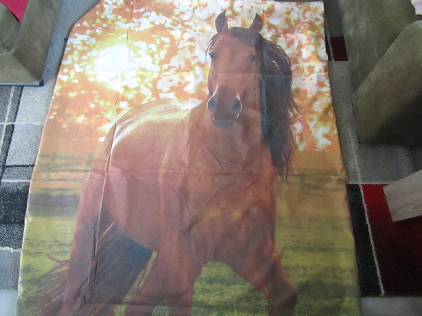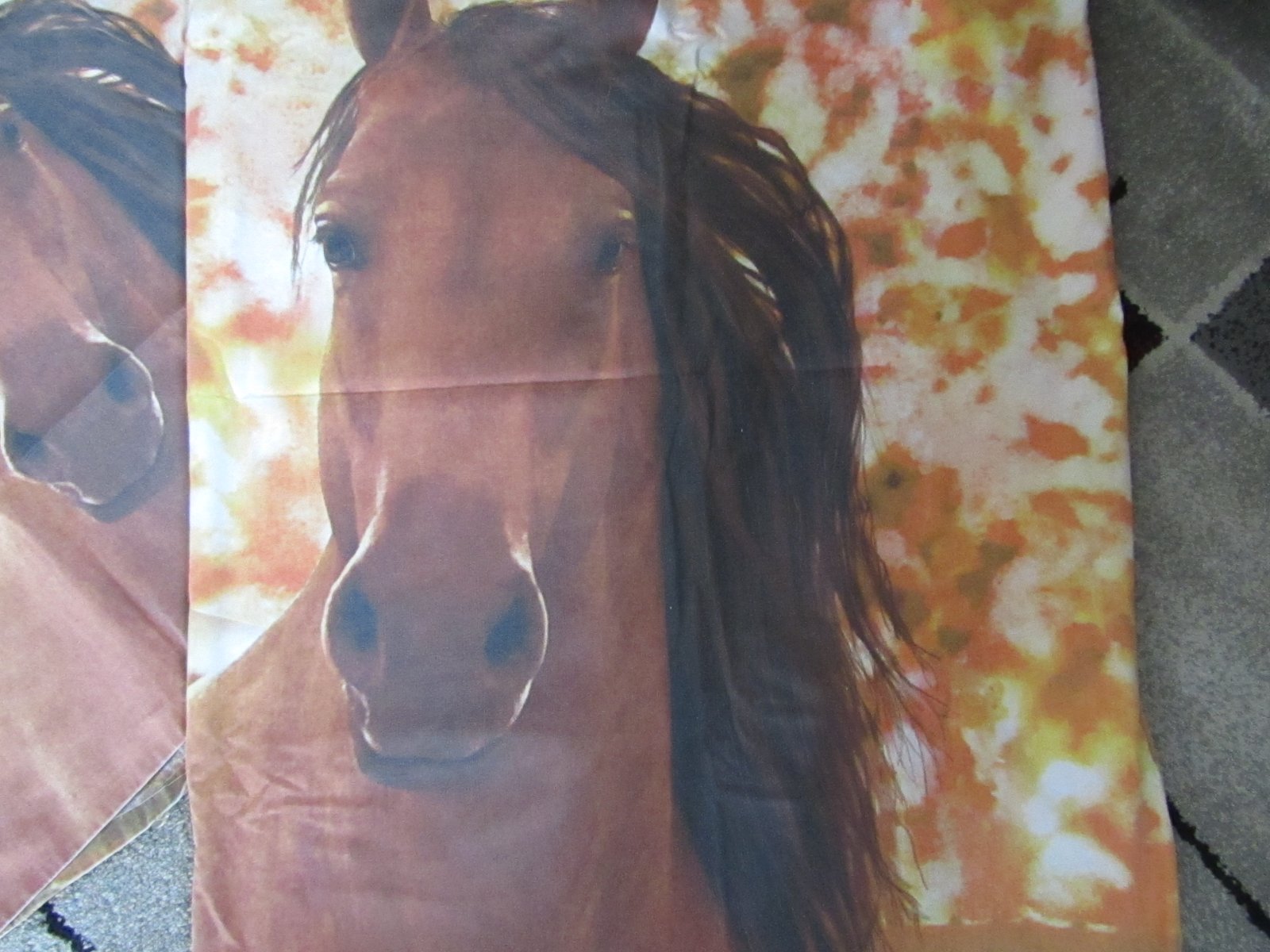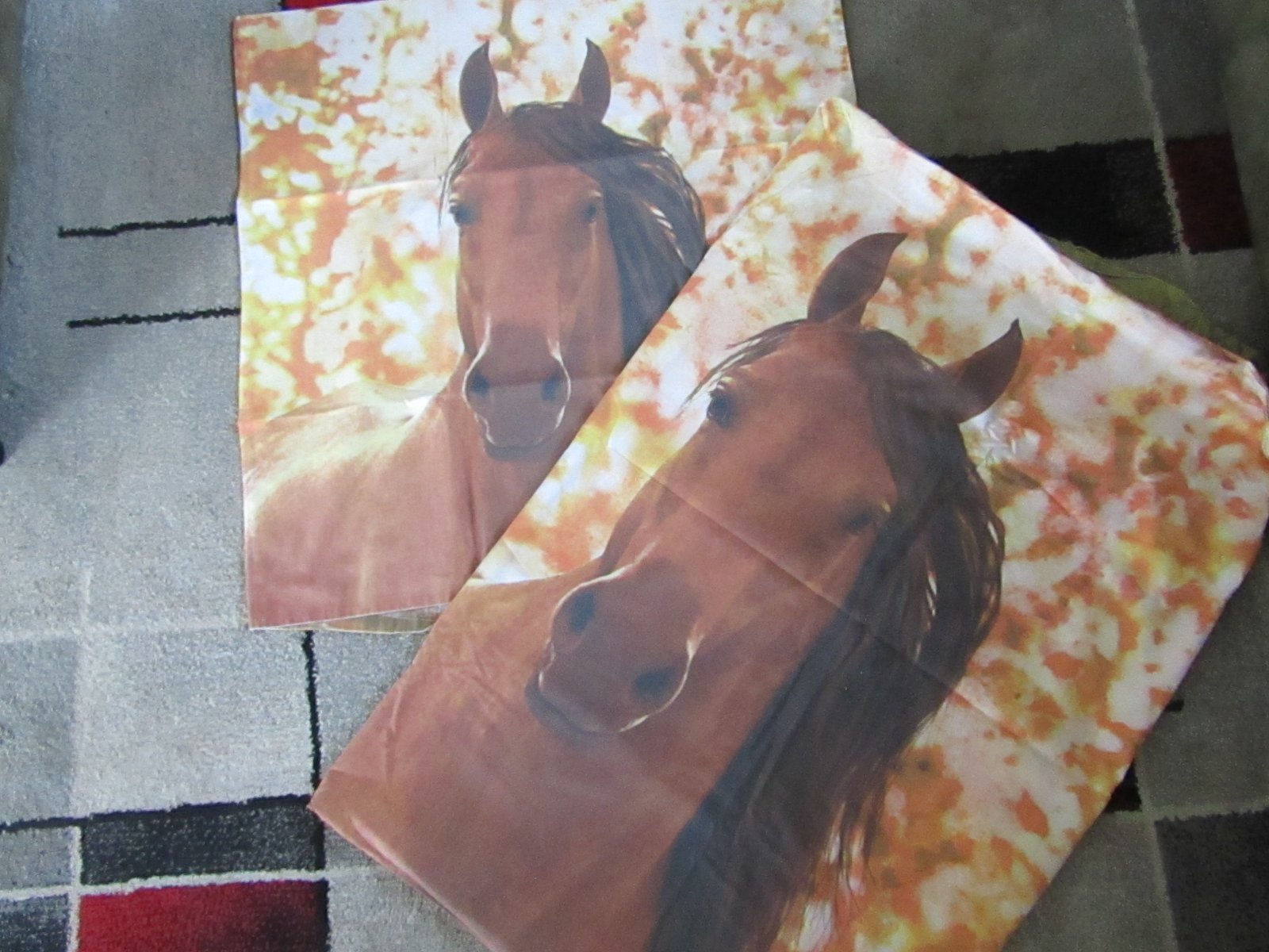 Dětské povlečení na velkou postel s motivem Koně,rozměr polštáře je cca 76cm x 78 cm,povlak na peřinu cca 132x 199 cm,zapínání na knoflíky,používané bez flíčků a dírek,známky praní,povlak na peřinu i polštář je z každé strany stejný,100% bavlna + poštovné 90 kč-zásilkovna.Balíkovna-80 kč.Na dobírku nezasílám!