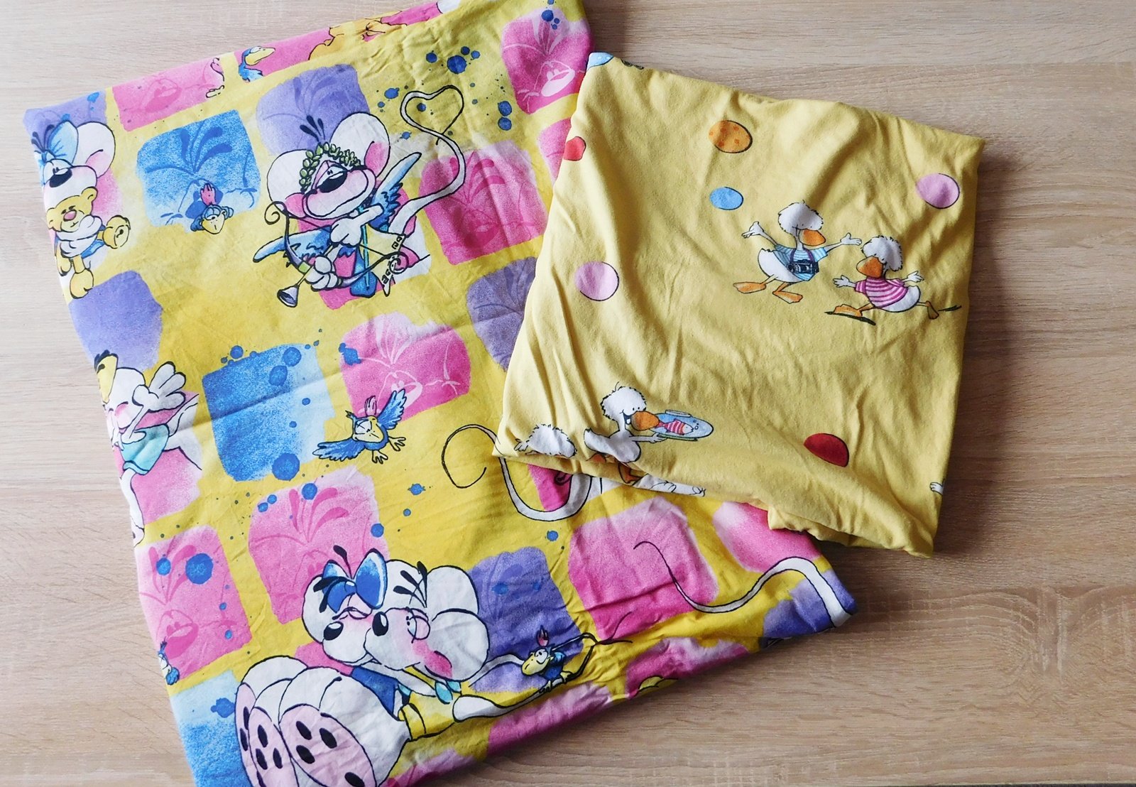 bavlněné,krásné dětské motivy,nepatří k sobě(používáno jako set),polštář 80x80cm-zapínání na zip,peřina 130x200cm-zapínání na knoflíky