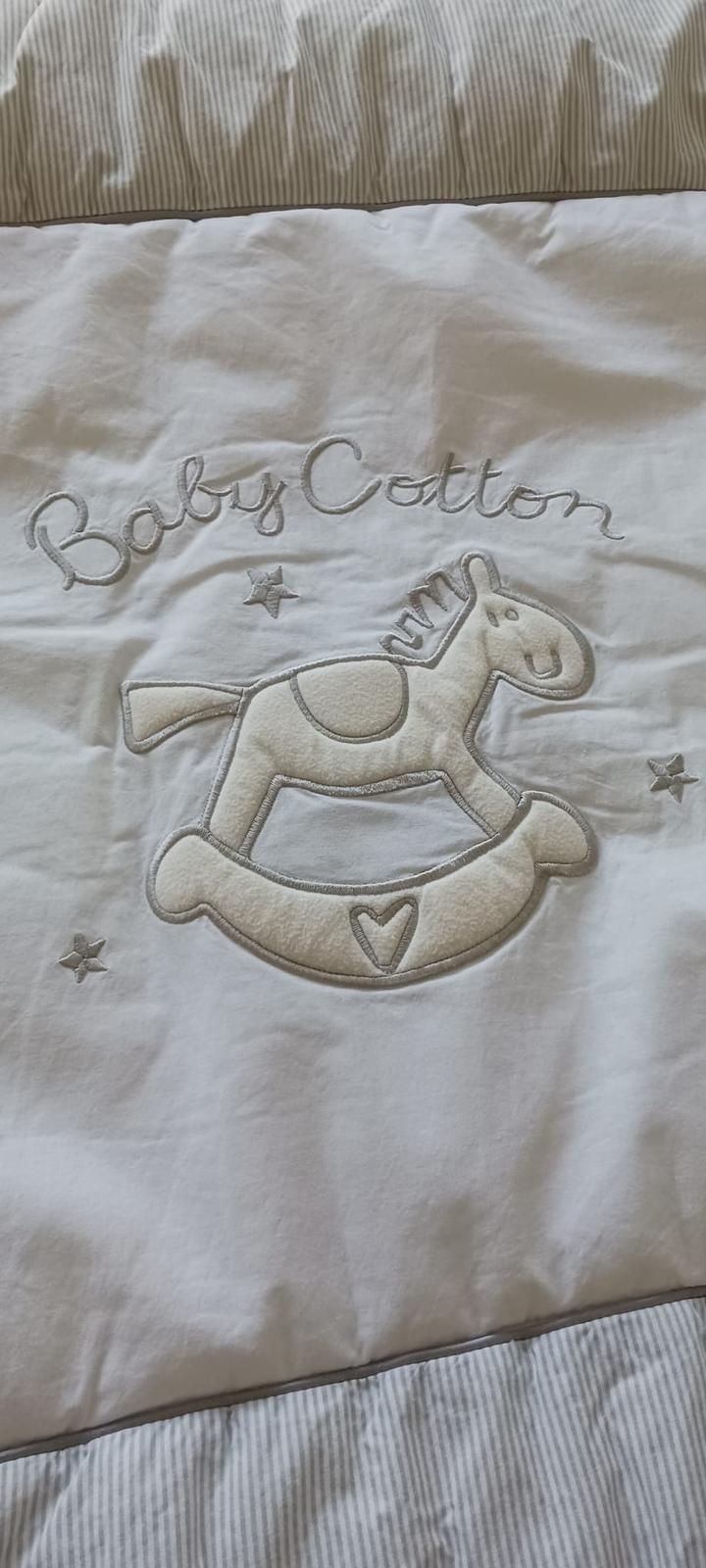 Peřinka a polštář, povrch 100% bavlna, vnitřek 100% polyester (duté vlákno), rozměry: 122x75, 50x40 cm. Peřinka je v pěkném stavu, polštář má praním nerovnoměrný povrch a známky používání.