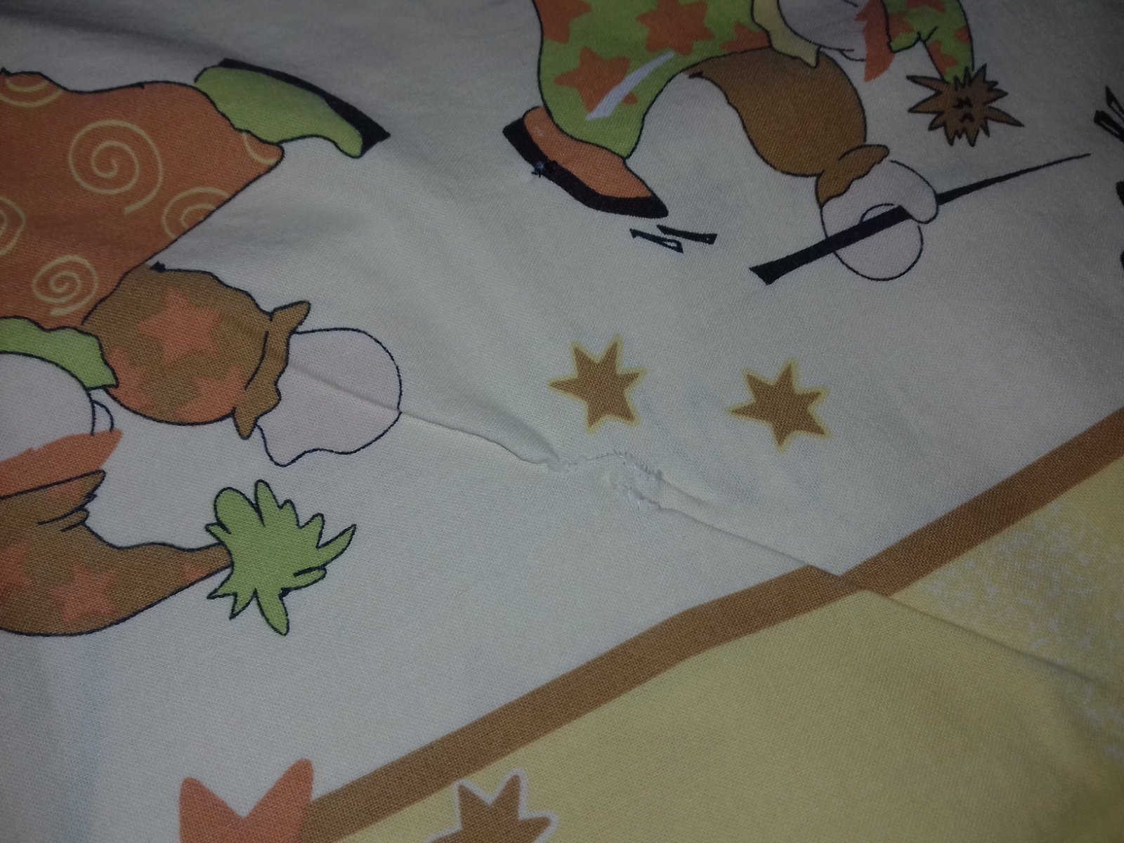 Velmi kvalitní bavlna. Na peřince zašitá dírka. Zapínání na knoflíky.