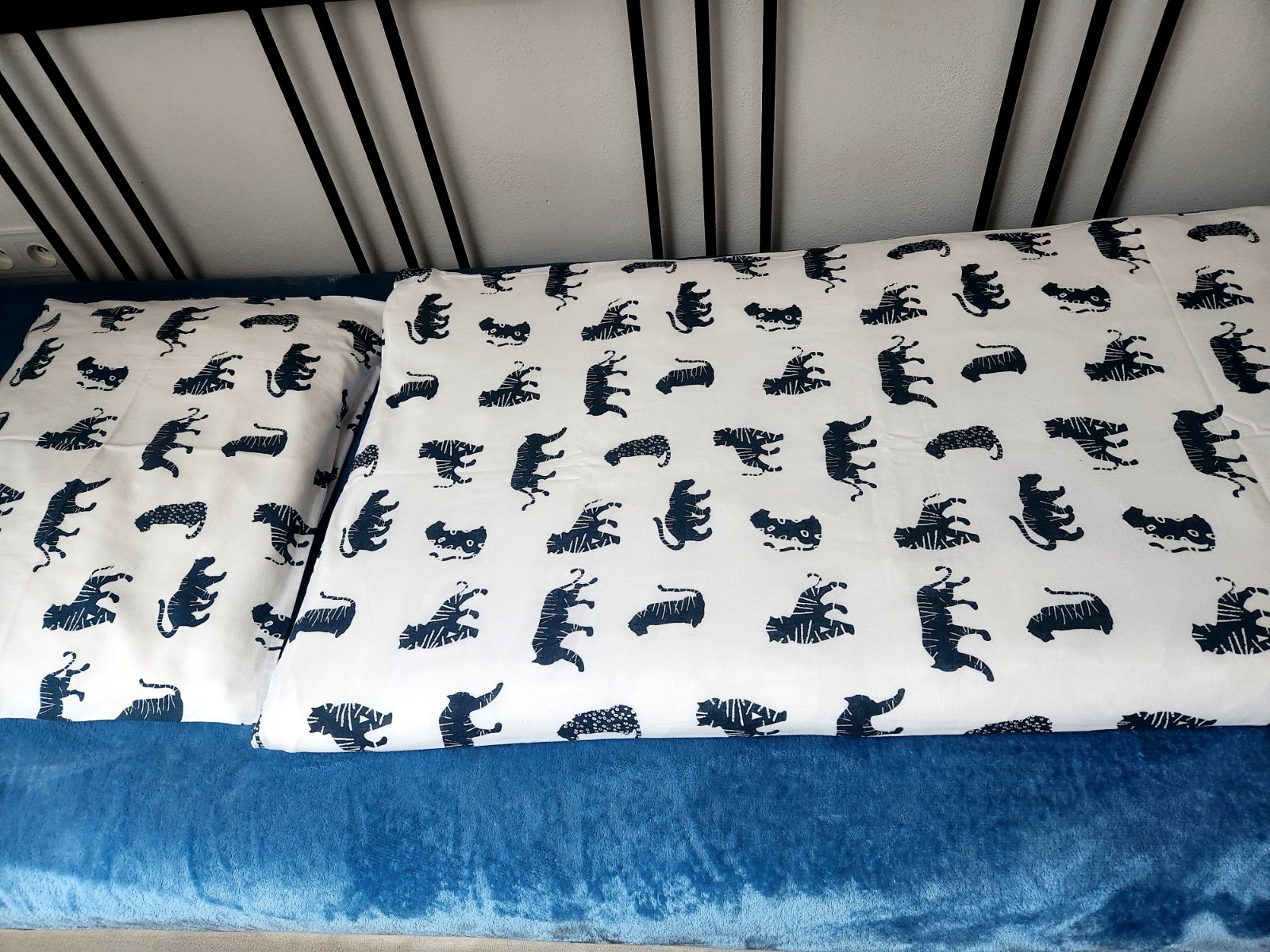 Kupované v Ikee, rozměry upravené - povlečení s tygry neměli v menších rozměrech a deka byla pouze ve slabé variantě