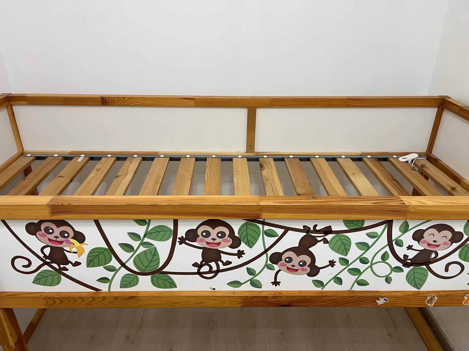 Prodám dětskou postel IEKA, rozměr 160 x 70 s matrací a roštem. Postel už nemá ochrannou bočnici ze strany, kterou se nám podařilo ulomit, vyfoceno a zohledněno v ceně. Postel jsme používali bez bo...