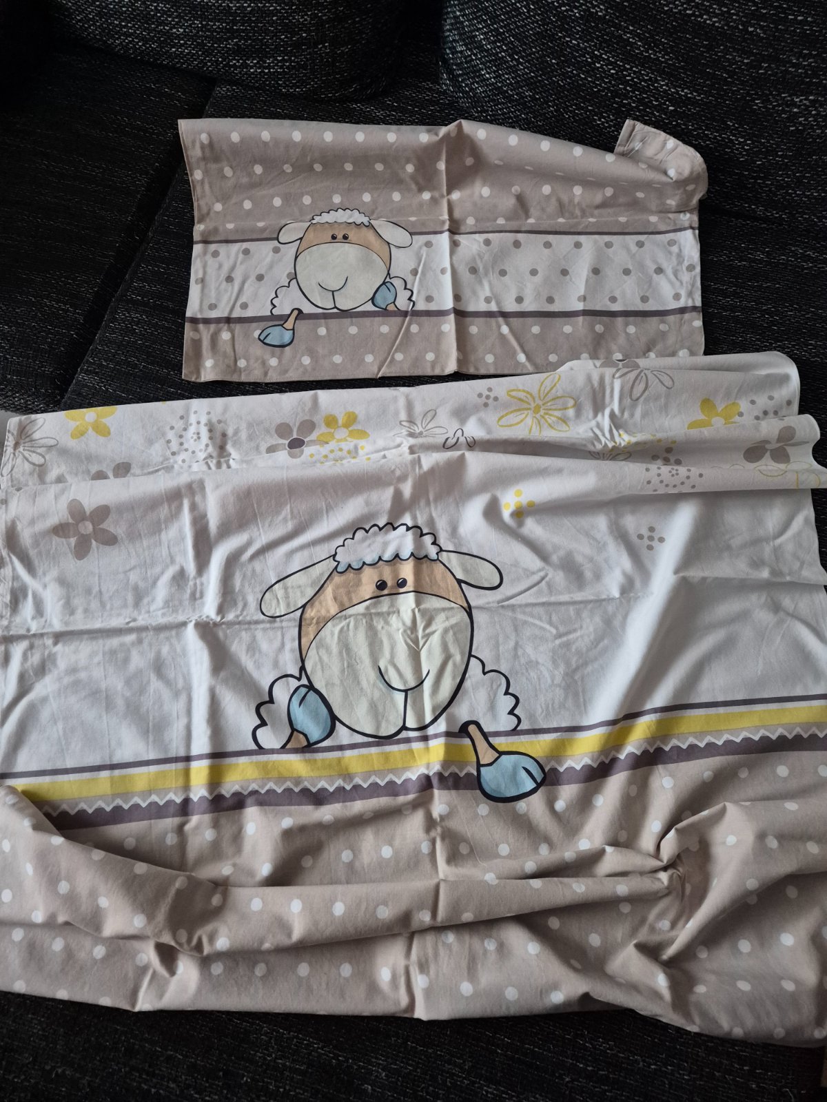 Prodám krásné bavlněné povlečení. Motiv puntíky s ovečkou. Rozměr povlečení na deku je 120 x 85 a rozměr polštářku 40 x 60 cm. Povlečení je z obou stran stejné. Zapínání na knoflíky. Stav velmi dobrý.