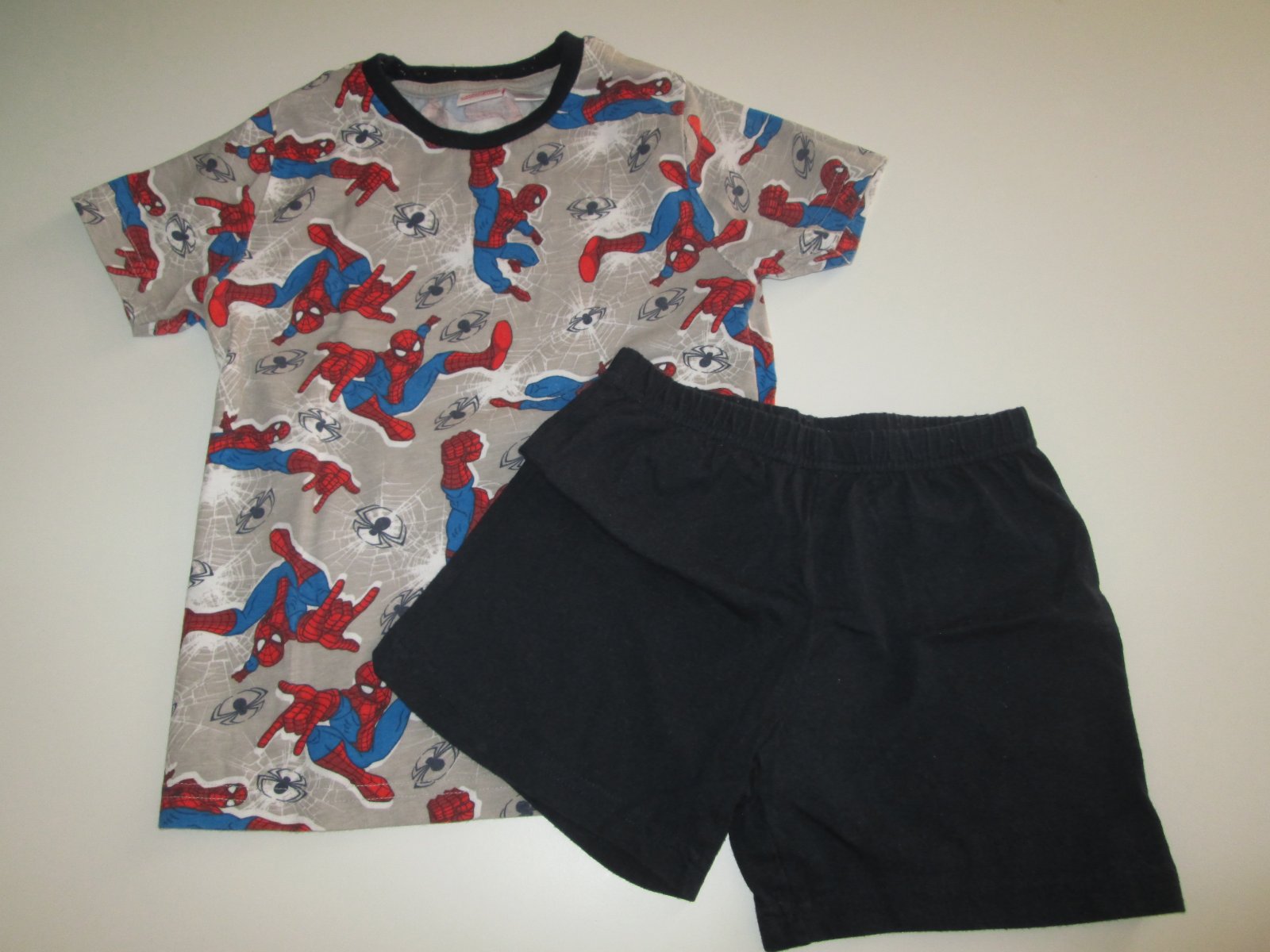 Letní pyžamko, po více dětech, krční lem lehce vytahaný. U kraťasů přetrhaný šev na nohavici.