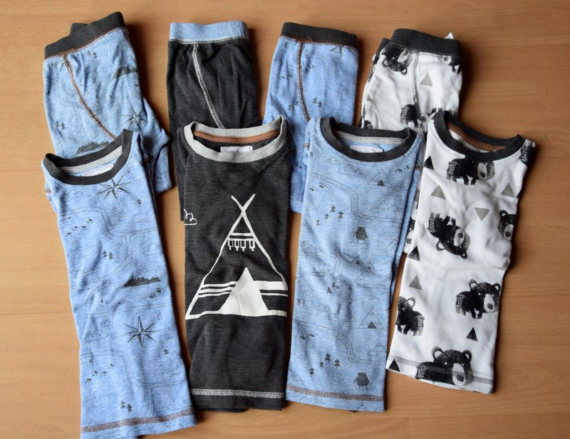 Kupovaná nová jako 3pack, jedno pyžamo koupené navíc z bazárku jako nenošené. Běžné známky nošení a praní, trochu žmolík. Tmavé má popraskaný obrázek, ale bylo to tak už od výroby. Uvádím jen pro pořádek. Cena za vše