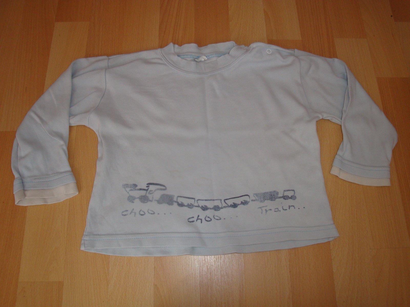 Stále pěkné bledě modré pyžamko s motivem vláčků, vel. 92. Jde pouze o horní díl. Dobrý stav. Pro více informací mě prosím kontaktujte.