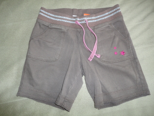 Pohodlné, čokoládově hnědé šortečky, slabší teplákovina, zrubu smyčka, pas rantlíková guma+zdobná šňůrka, boční kapsy, jedna s výšivkou, zdobně drbané zakončení nohavic dole, d. 27, vnitřní 13cm, š. nohavice dole 18cm, pas 26-29cm, materiál 96% bavlna, 4% spandex