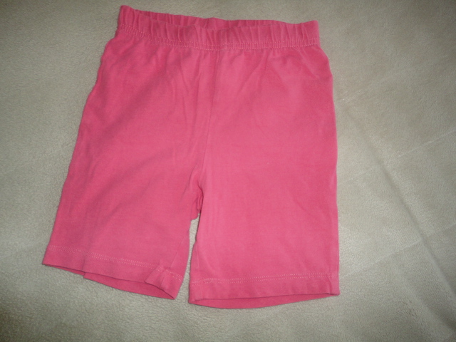 Příjemné legínové kraťásky, krátce nošené, vhodné i na spaní, materiál 95% balna, 5% elastan, barvička do lososové, uvedená velikost 110-116, ale přijde mi menší, měřte, d. 28, vnitřní 10,5cm, pas 22-25cm