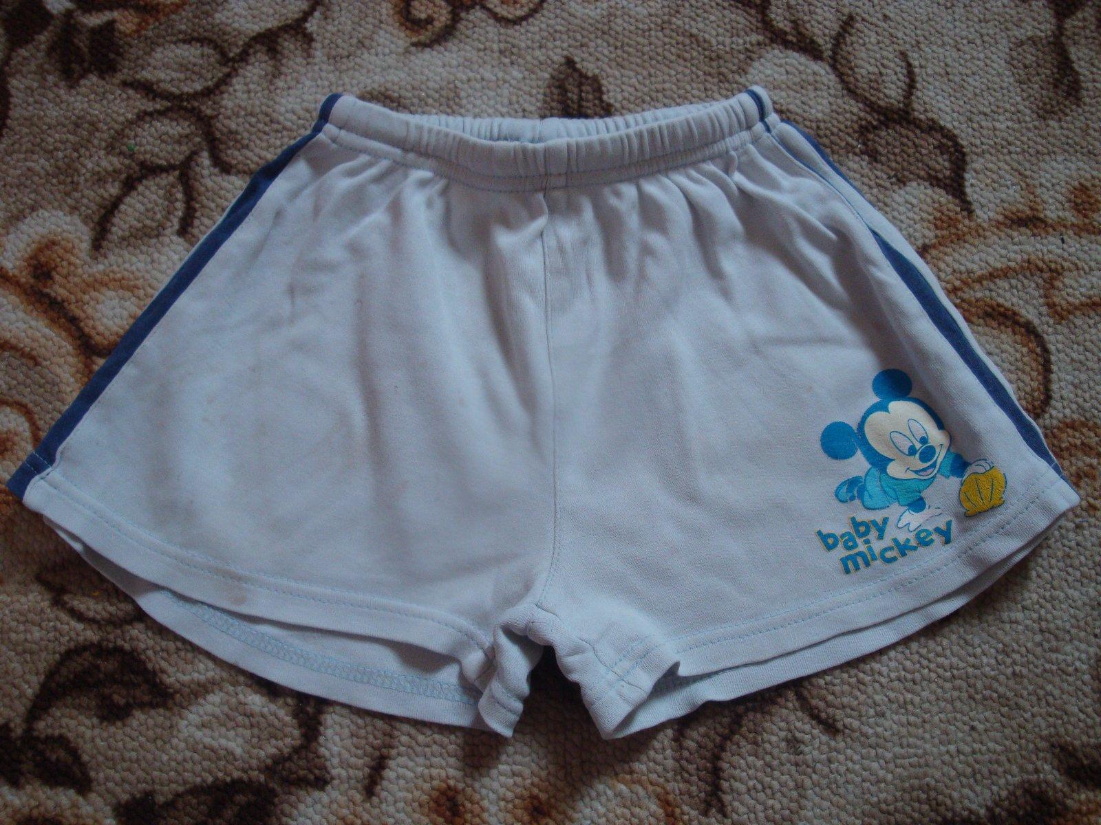 Kraťasy s Micky Mousem na donošení, vel. 80, zn. Disney. Barva: bledě modrá s lampasy, vpředu je obrázek myšáka. V pase jsou na gumu a dají se i stáhnout šňůrkou. Výše poštovného činí 27,-Kč obyčejně nebo 49,-Kč doporučeně. Pro více informací mě prosím kontaktujte.