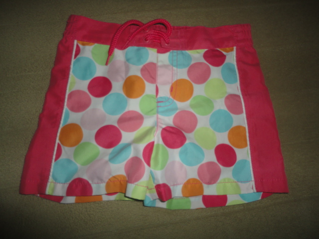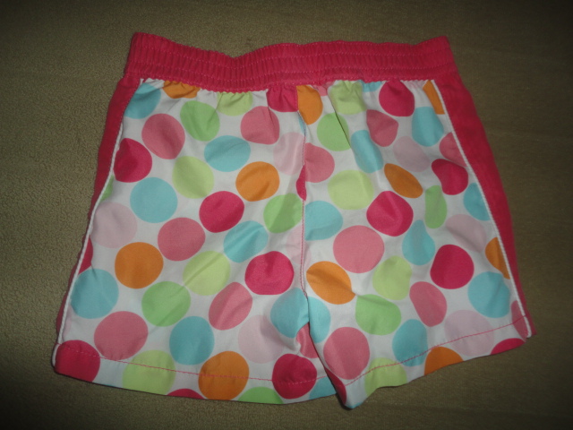 Perfektní kraťásky s duhovými pontíky, pas v zadní části guma, falešný poklopec, d. 25,5cm, vnitřní 7cm, pas 28-31cm