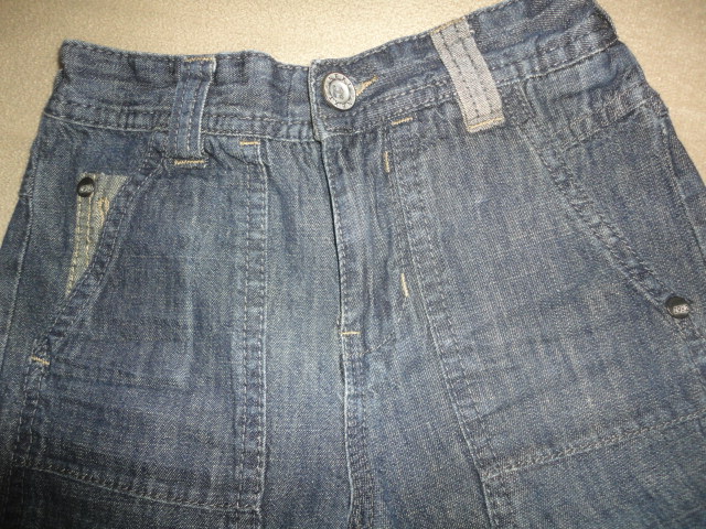 Odlehčená, měkká supr riflovina v kombinaci s jiným barevným provedením, velmi krásné, pas s regulační gumou, bezva kapsy, d. 37-38,5cm, nohavice do kulata, vnitřní d. 19, pas max. 29cm