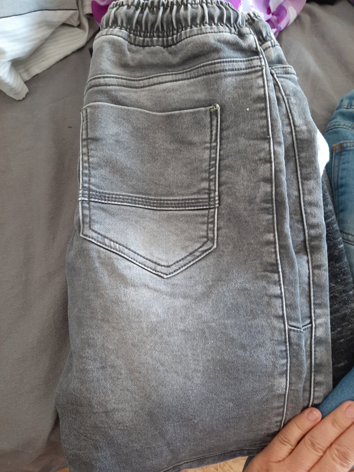 5. šedé jeans šortky, šisované, měkoučké, pružné, výrazné prošívání , v pase na gumu, tkaloun fce, kapsičky na bocích a na zadečku, nošené, světlounký flíček na zadní kapse, jinak perfektní stav P 29, 5 D 47/23 F&F 165,-
