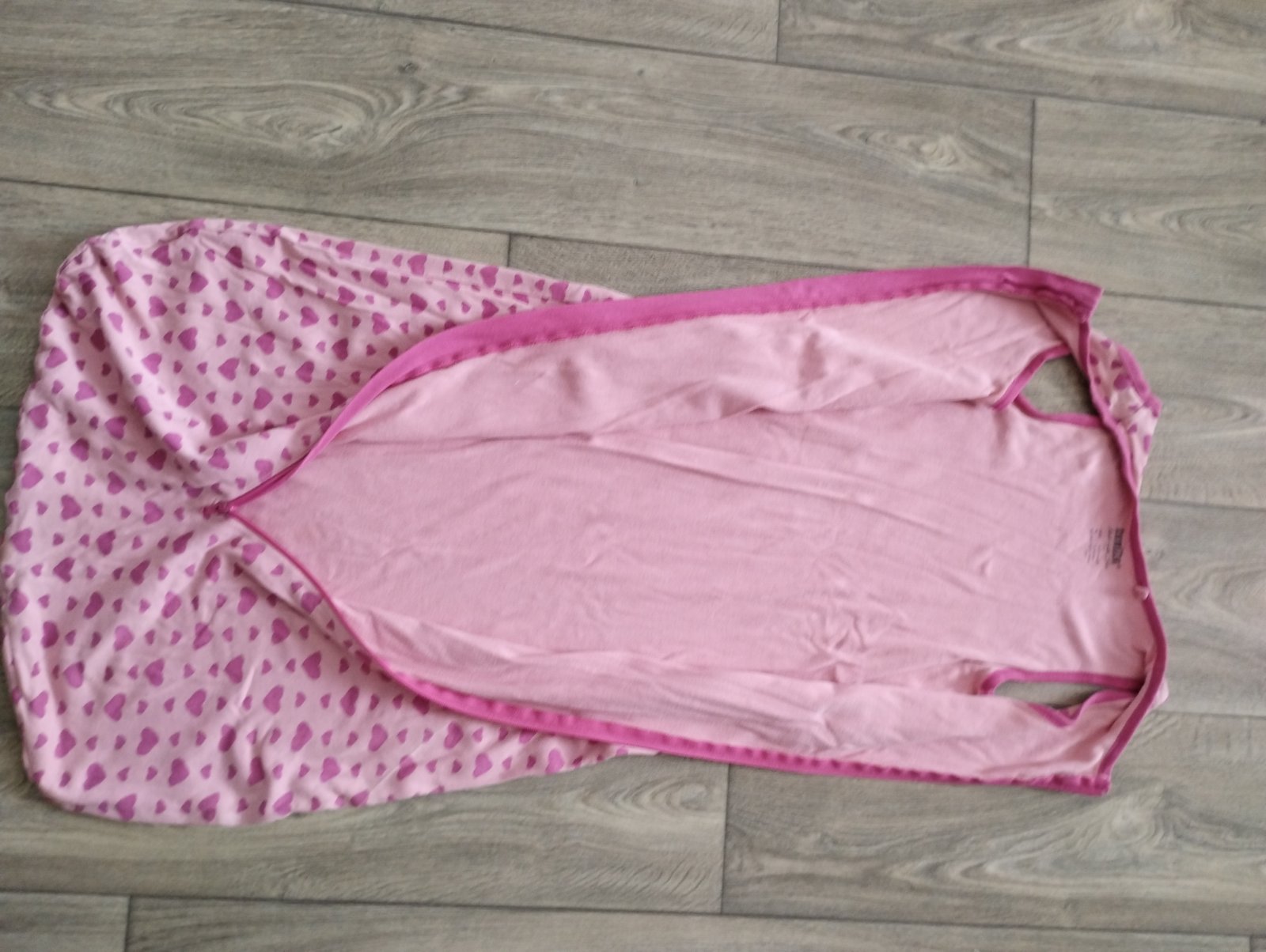 Světle růžový letní spací pytel, vel. 86/98, po jednom dítěti, trochu žmolek od praní. Délka 88 cm.