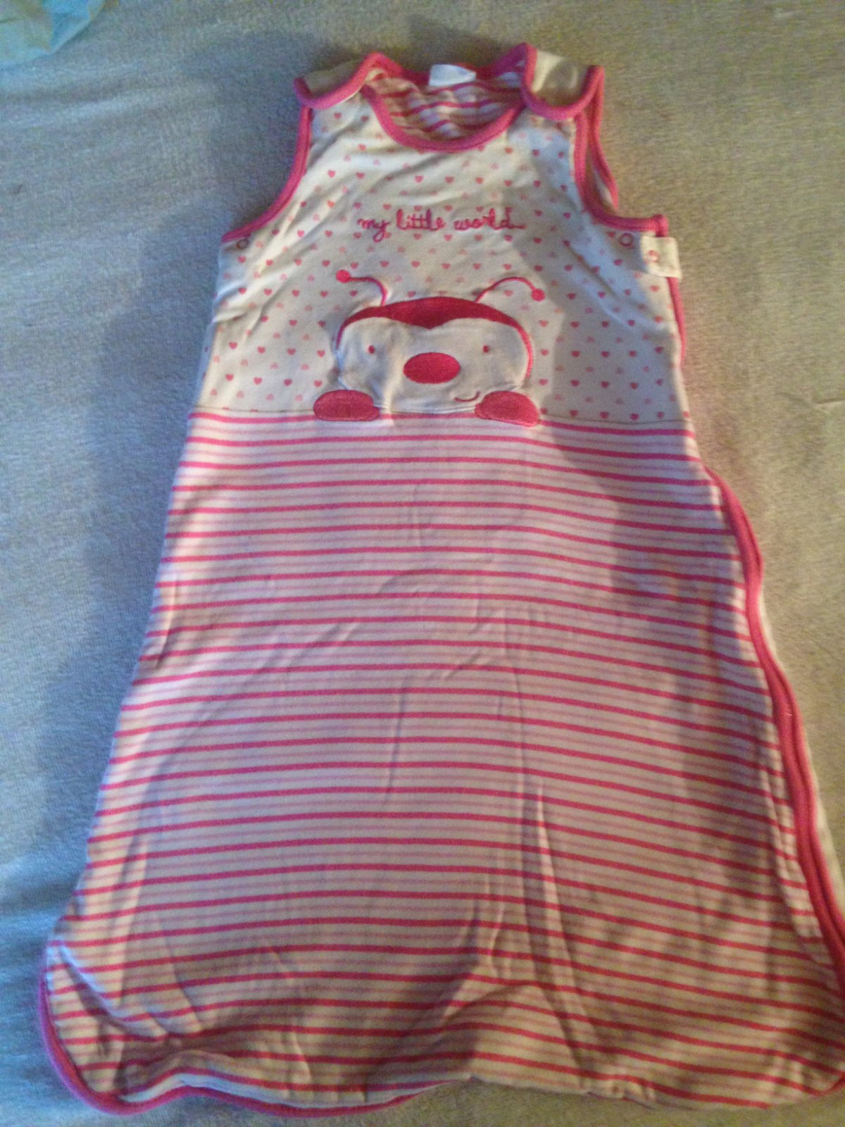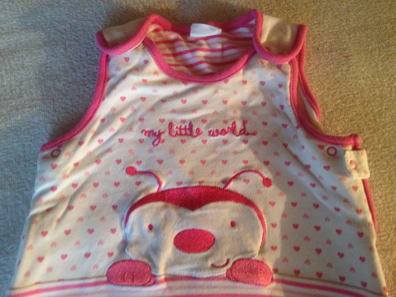 Prodám dívčí spací pytel ve velmi pěkném stavu, značka Ladybird, velikost uvedená 0 - 6 měsíců (68), složení: 100 % bavlna, délka spacího pytlíku je: 64,5 cm. Cena spacího pytlíku je: 90 Kč + poštovné. Krabice č. 13.